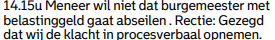 Het verhaal over burgemeester Schouten die van de Euromast gaat abseilen, houdt de gemoederen flink bezig. Zo laat een meneer weten dat hij het absoluut niet eens is dat de burgemeester van belastinggeld gaat abseilen. De klacht van de man is netjes meegenomen. Wat ermee wordt gedaan, is niet bekend.