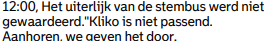 Een stembureau op een school brengt voor- én nadelen met zich mee. Zo kreeg een stemmer een bal tegen zijn of haar hoofd. Het zorgde voor een ontstemde kiezer, al kon er op dat moment al niks meer aan gedaan worden. “We nemen het mee voor de volgende verkiezingen”, valt te lezen.
