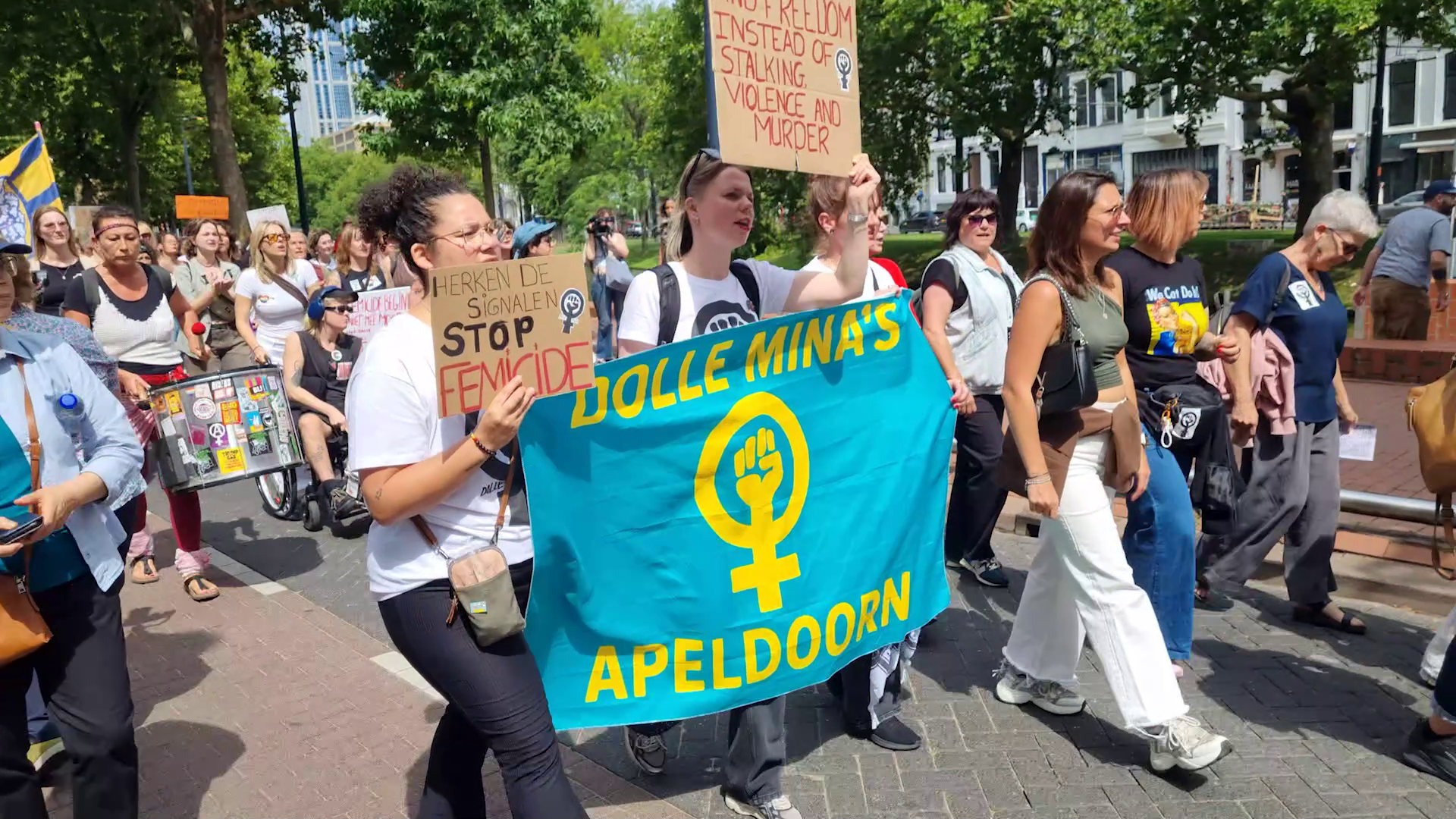 De Dolle Mina’s willen nu elke zondagmiddag een protestmars organiseren. Wie mee wil lopen, kan zich om 13.45 uur melden op het Schouwburgplein om een route van 4,5 kilometer te lopen. Het plan is om dit zeker tot 22 september te doen; dan spreekt de Tweede Kamer over een plan om femicide tegen te gaan.