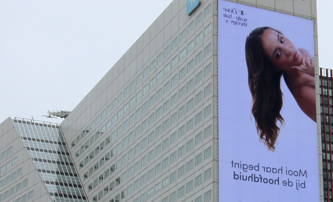 Maar dat blijkt niet per se het idee geweest te zijn. Op TikTok is te zien hoe model Joann van den Herik naar Rotterdam trekt om te kijken of haar advertentie daadwerkelijk verkeerd is opgehangen. Eenmaal op locatie vindt ze een spiegel op straat. En wat blijkt? Als je door die spiegel kijkt, wordt de boodschap alsnog leesbaar en wordt de kijker eigenlijk gedwongen om van perspectief te veranderen.