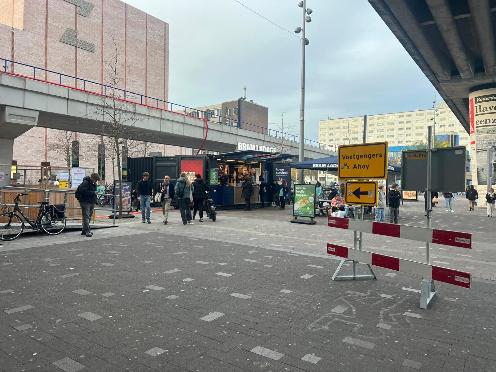 De roltrappen en liften aan de Ahoy-zijde zijn buiten gebruik, maar reizigers kunnen terecht bij de tijdelijke lift en roltrappen aan de kant van de bushaltes. Ook daar is extra bewegwijzering geplaatst om de doorstroom soepel te laten verlopen.
