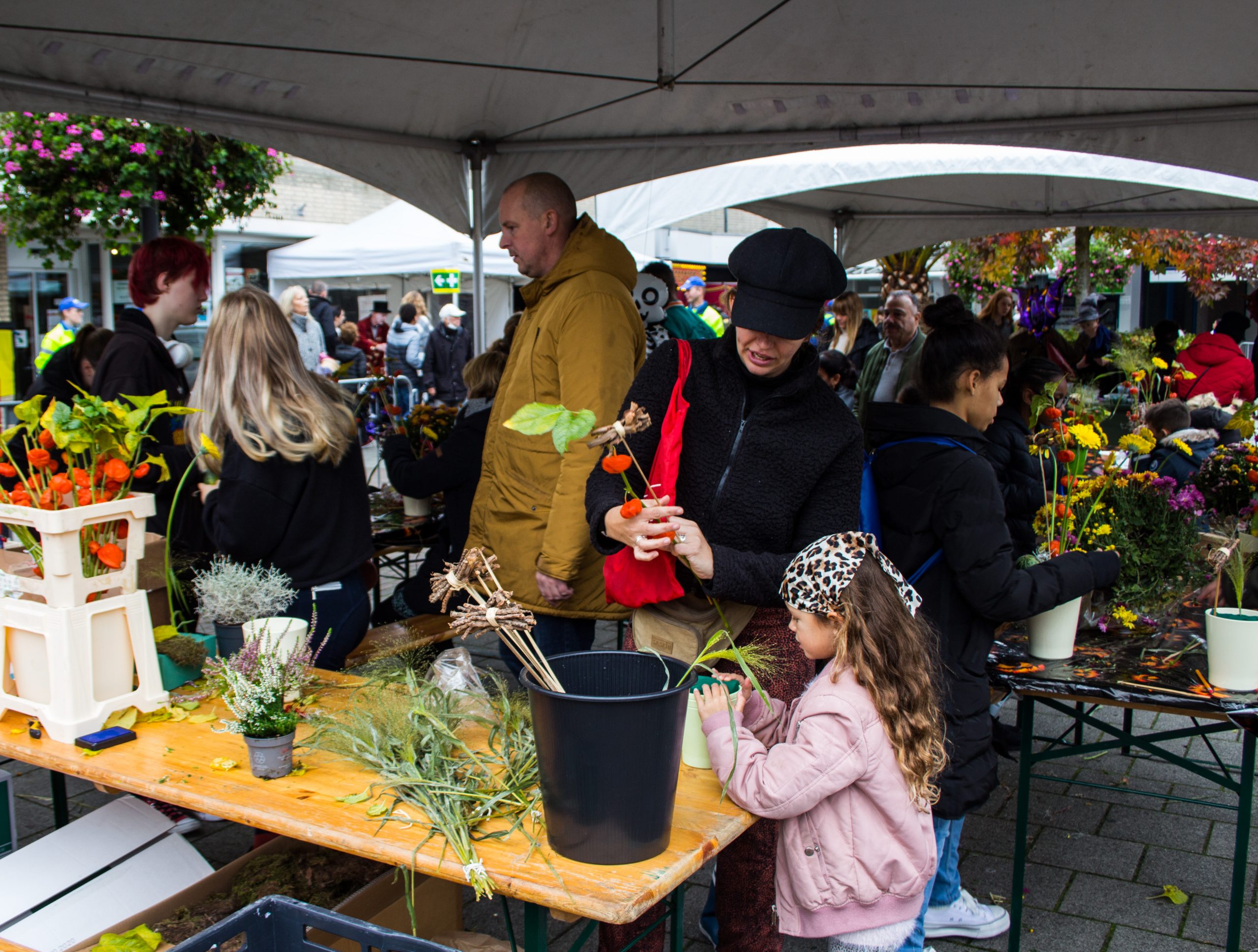 Meer dan vijftig vrijwilligers zorgden ervoor dat de Zevenkampse kinderen een onbezorgde dag beleefden. Er kon worden geknutseld, meegereden worden met een treintje, er stond een schietsalon en een stand waar je je eigen bosje Halloween-bloemen kon maken.