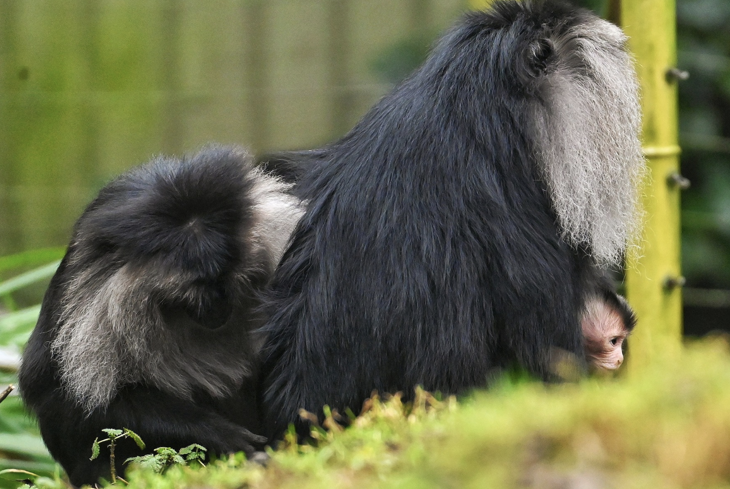 De groep baardapen in Blijdorp bestaat nu uit drie volwassen vrouwtjes, één volwassen man, twee jonge mannetjes, een jong vrouwtje en het pasgeboren jong.