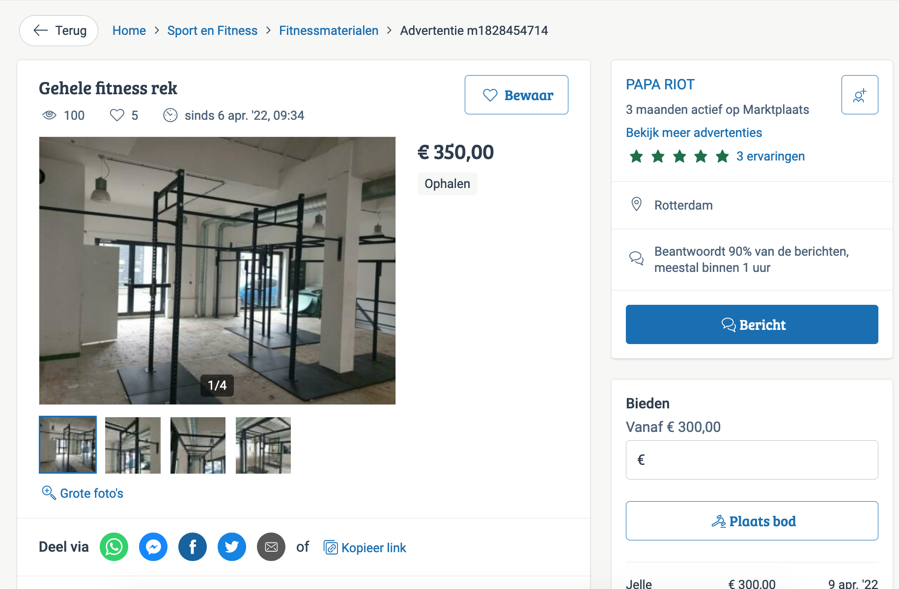 Op het account van verkoper Papa Riot, verschijnt nu een deel van de inboedel van de Rotterdamse sportschool online. Deze naam is ook terug te vinden bij de registratie van 010gym in het handelsregister van de Kamer van Koophandel. In het handelsregister is ook te zien dat de 010gym B.V. en Papa Riot verbonden zijn aan een aantal andere bedrijven, waaronder 010print en 010box. We blijven de situatie uiteraard volgen.