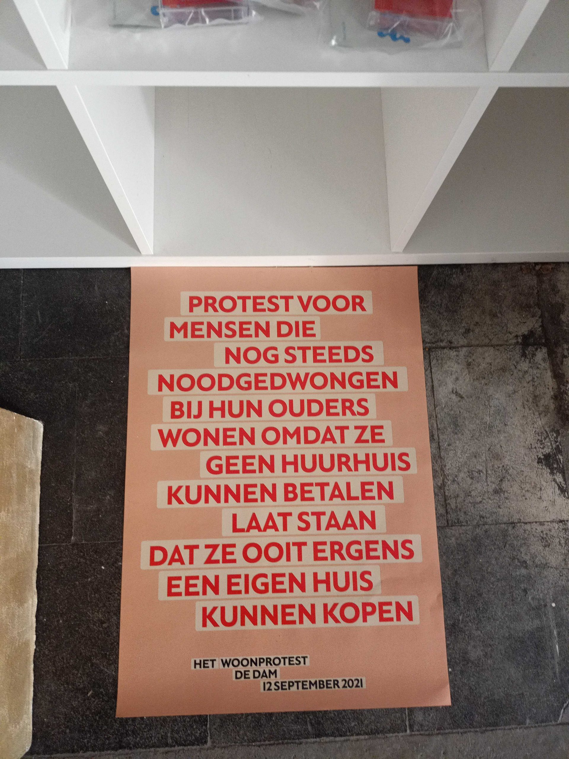 Bij Roodkapje in het centrum van de stad kun je posters ophalen van het Woonprotest. Directeur Marloes de Vries aarzelde niet toen ze de vraag kreeg of zij een ophaalpunt voor de posters in Rotterdam kon zijn. “Ook al is het protest in Amsterdam. Dit gaat onze doelgroep direct aan.”
