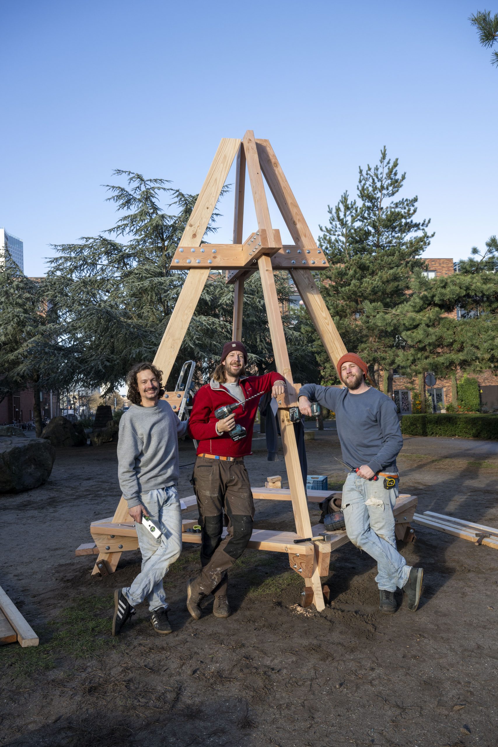 Met de feestdagen voor de deur halen veel mensen een kerstboom in huis. Heel leuk, maar na een maand worden die kerstbomen allemaal weer weggegooid. Dat kan anders, dachten de mensen van Opzoomer Mee, Rotterdam Circulair en Studio Klinkenberg, en verzonnen in 2023 de herbruikbare kerstboom voor in de straten van Rotterdam. Inmiddels is de houten buurtboom uitgegroeid tot een heuse, Rotterdamse kersttraditie.