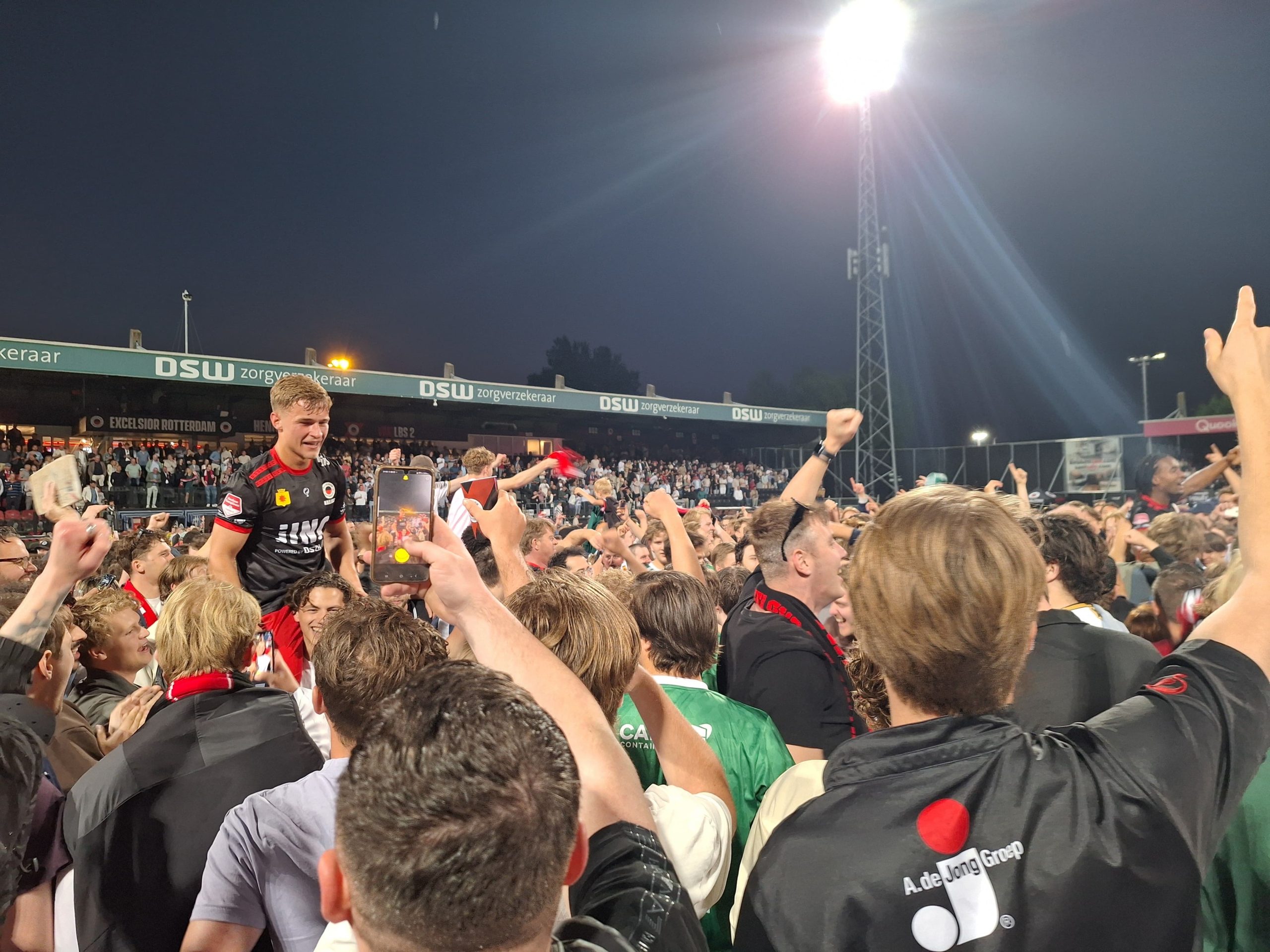Voorafgaand aan de wedstrijd spraken wij al met de gespannen maar hoopvolle fans Giovanni en Anouk. Ze vertelden over hun liefde voor de club, de sfeer op Woudestein en hun vertrouwen in promotie. En ze kregen gelijk en waren er uiteraard bij op deze historische avond. We verzamelden een aantal bijzondere beelden van hun blijdschap, spanning en het feest na afloop.