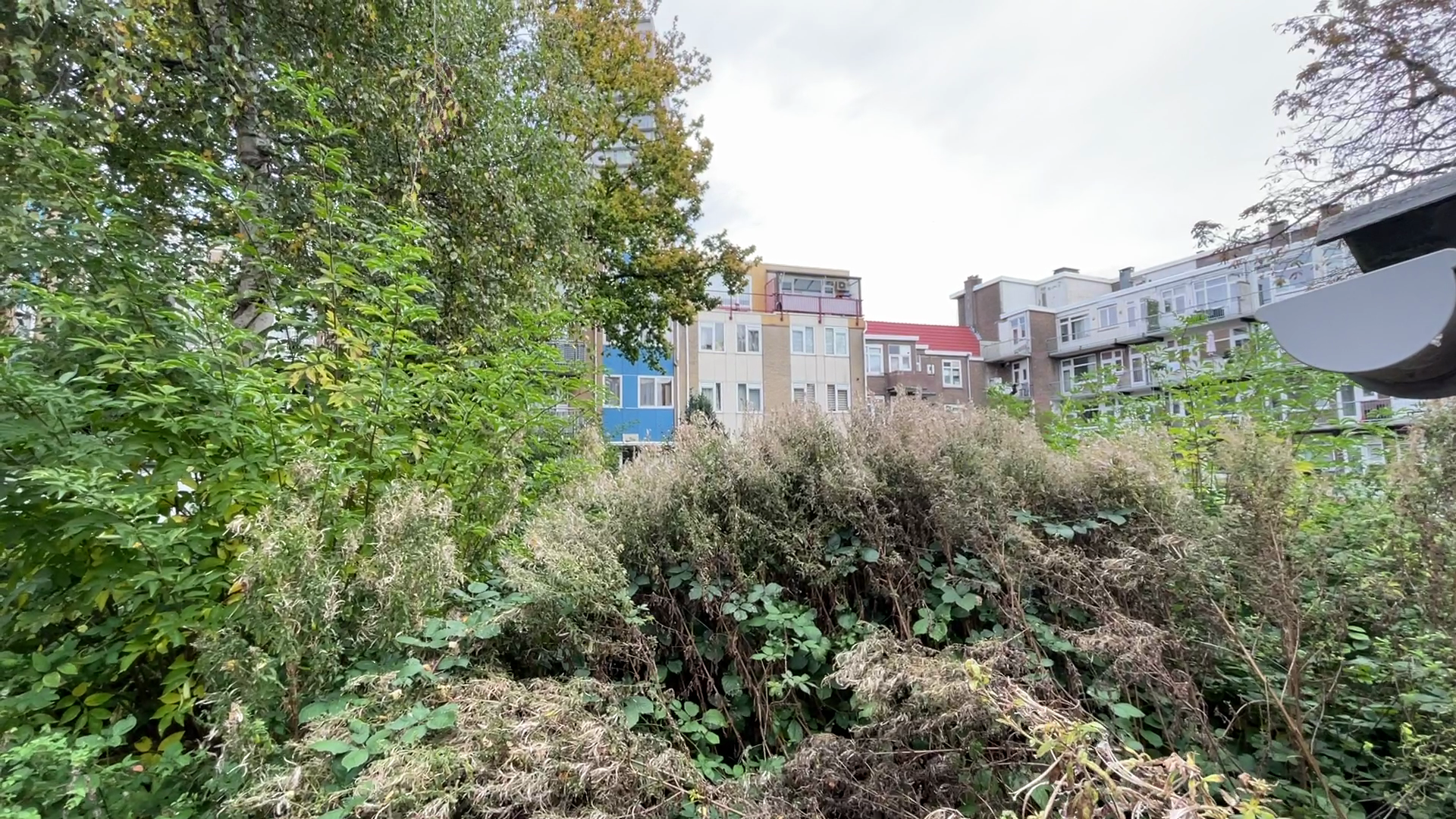 Een bewoonster van het particuliere-woonblok aan de kant van de Mijnsherenlaan, staat buiten te praten met haar kinderen. We vertellen haar dat we graag meer willen weten over de binnentuin en direct mogen we met haar mee naar binnen. Ze leidt ons door de keuken naar het balkon. Een balkon dat in theorie een prachtig uitzicht heeft op een groene oase midden in de drukke Tarwewijk. Een plek waar haar kinderen kunnen spelen of waar ze met buurtgenoten samen kan komen. Tot groot verdriet van de bewoonster is dat helaas al jaren niet meer mogelijk.
