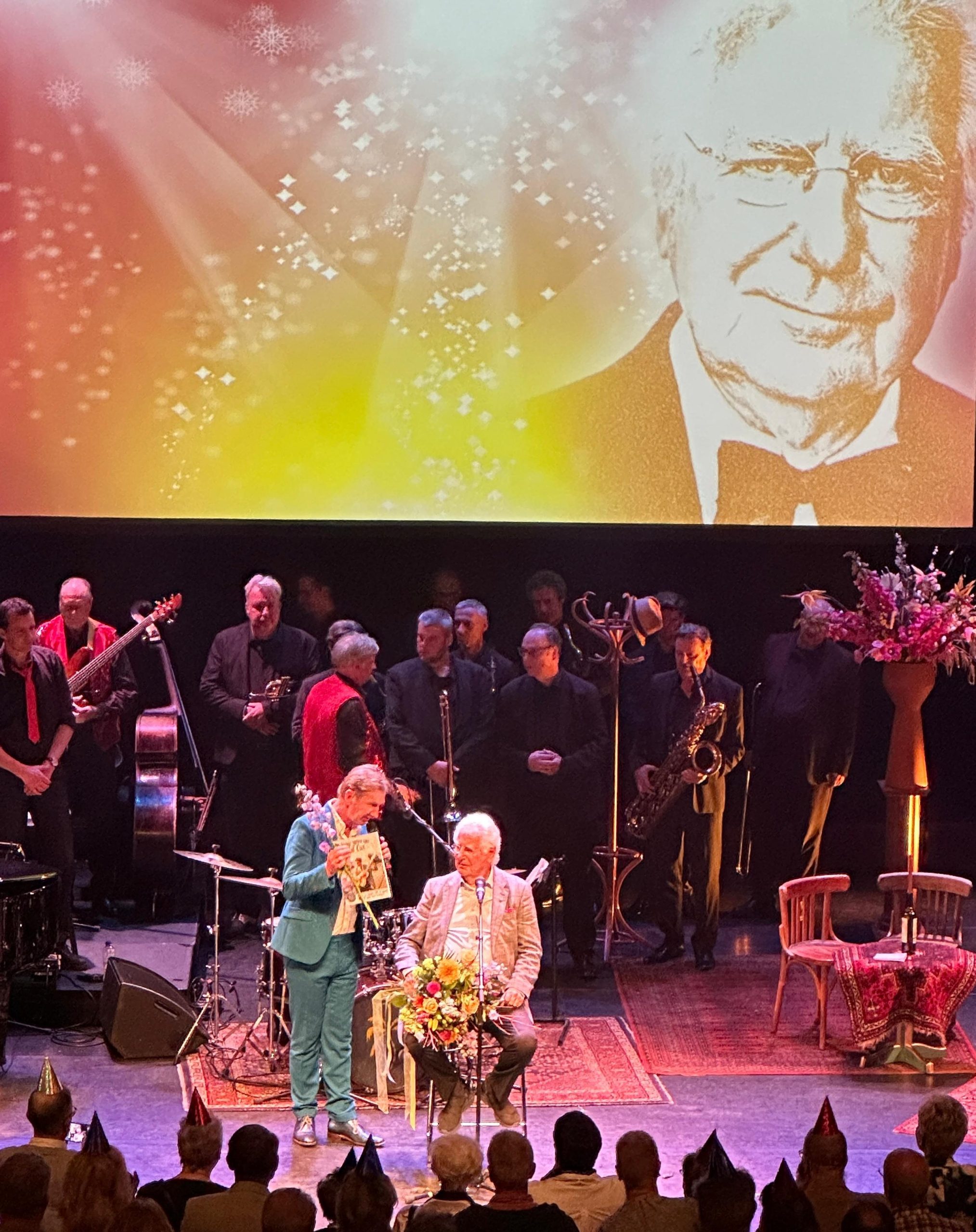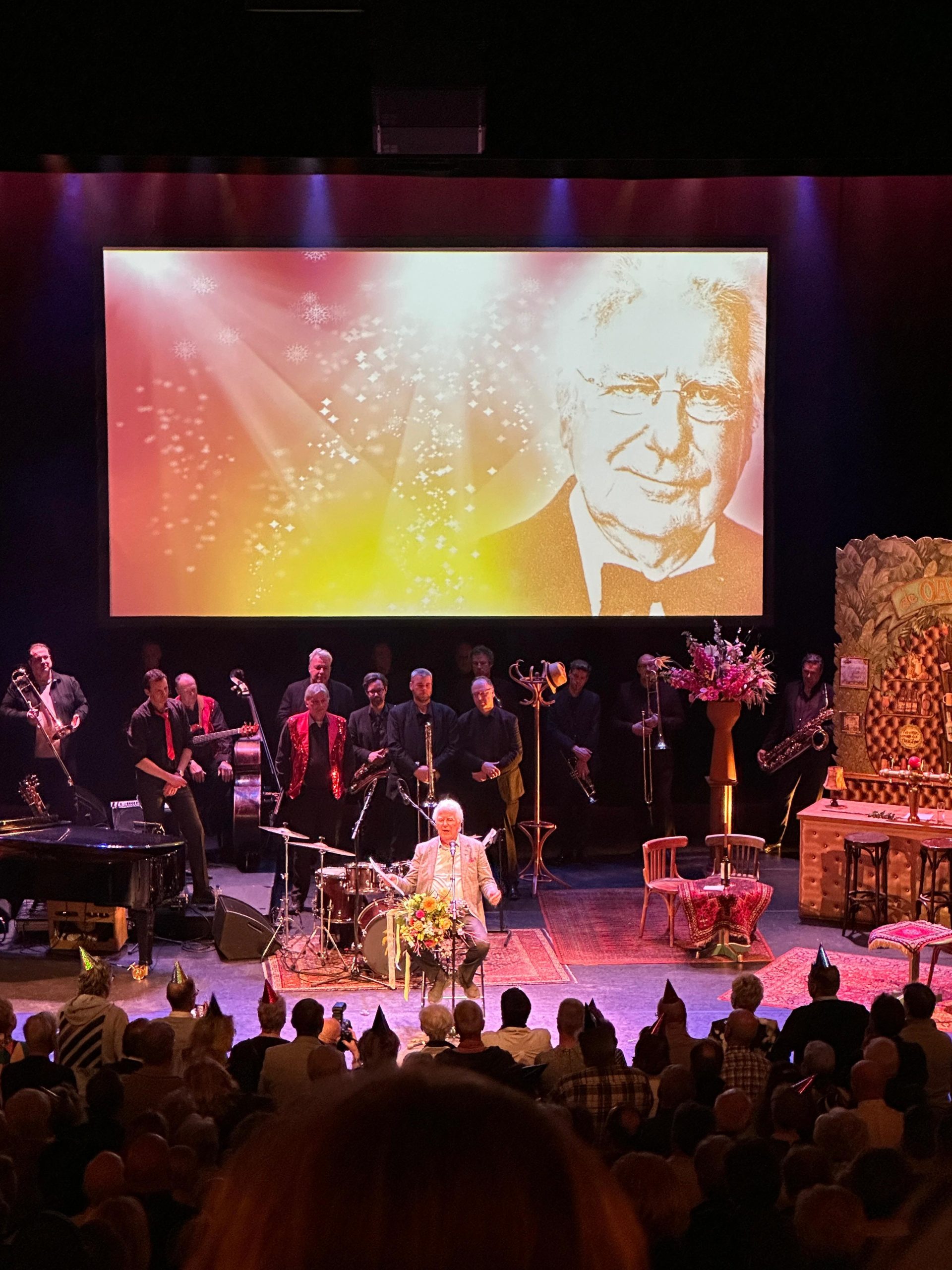 Het was een unieke avond in het Oude Luxor: een theatershow ter ere van de 85e verjaardag van acteur en liedjesschrijver Gerard Cox. De artiest werd de hele avond geflankeerd door Carola Schouten en omringd door bijna alle Rotterdamse coryfeeën.