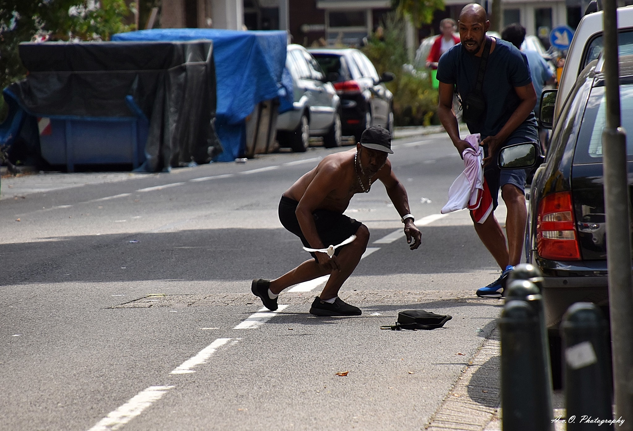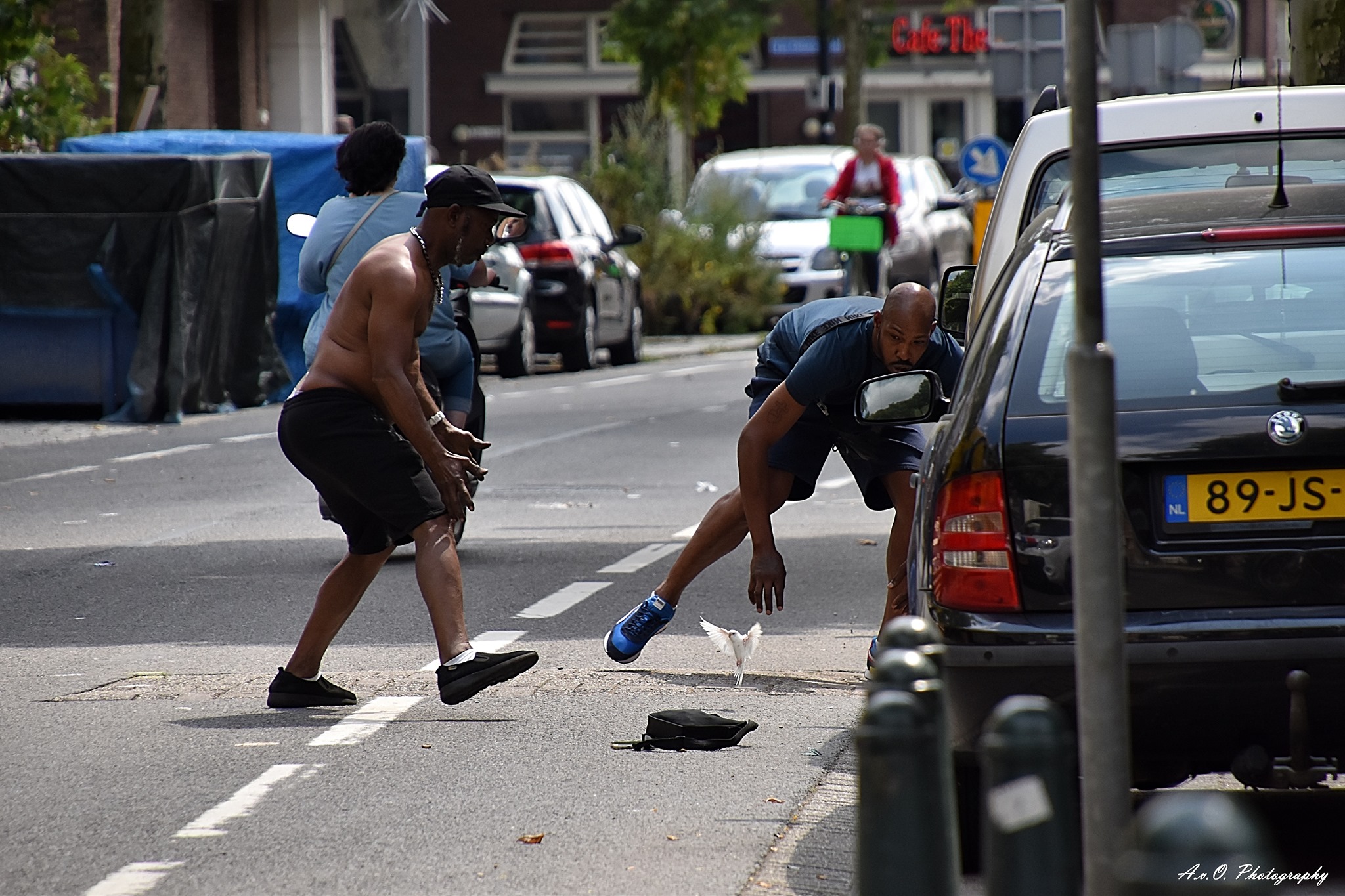 Het waren afgelopen donderdag komische taferelen op de Allard Piersonstraat in Rotterdam-West. Een bus die midden op de weg stilstaat en paniek om een wit vogeltje dat zich maar niet liet vangen ondanks verwoede pogingen van omstanders. Astrid van Opstal fietste er toevallig langs en legde het vast met haar camera.