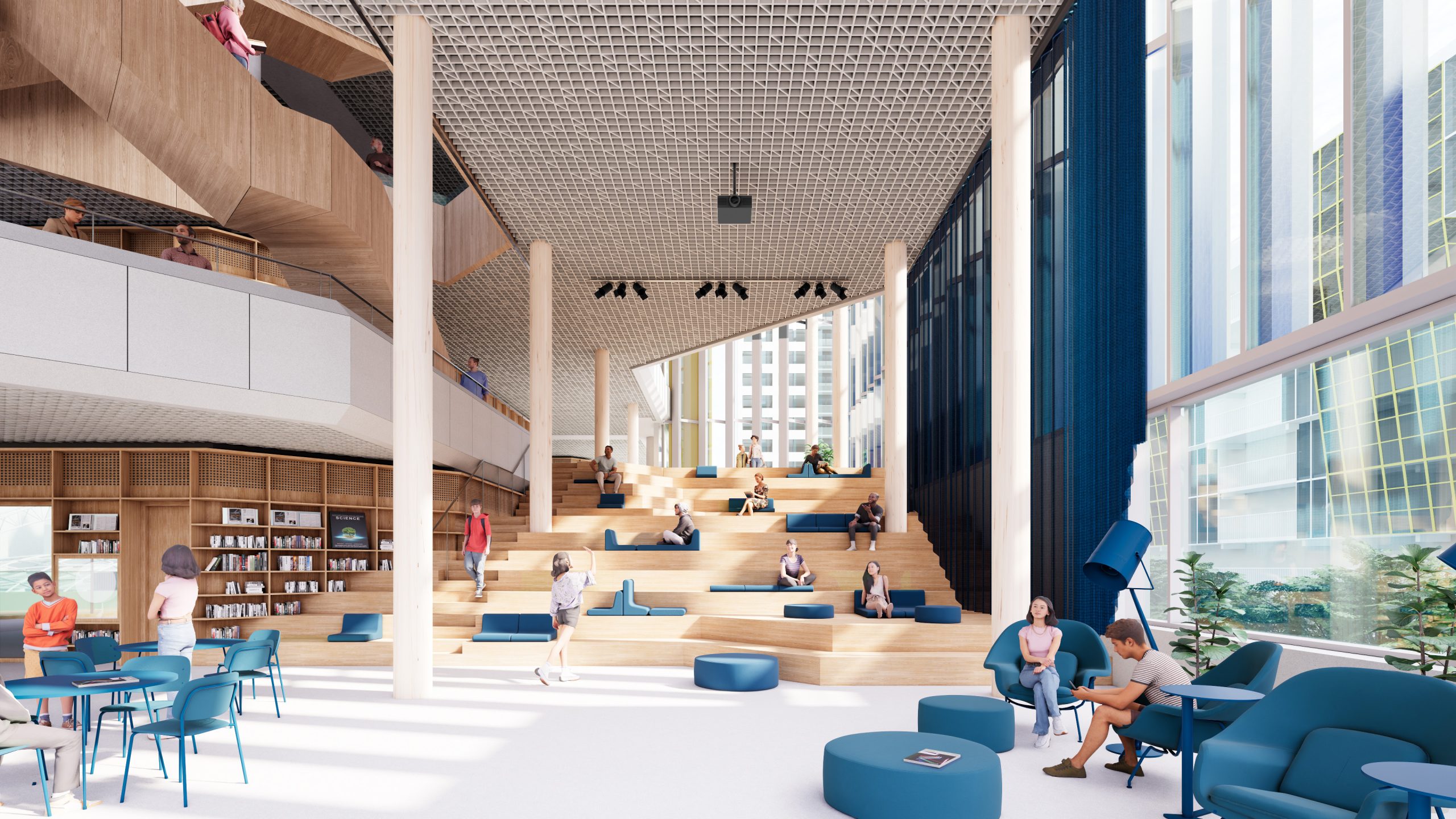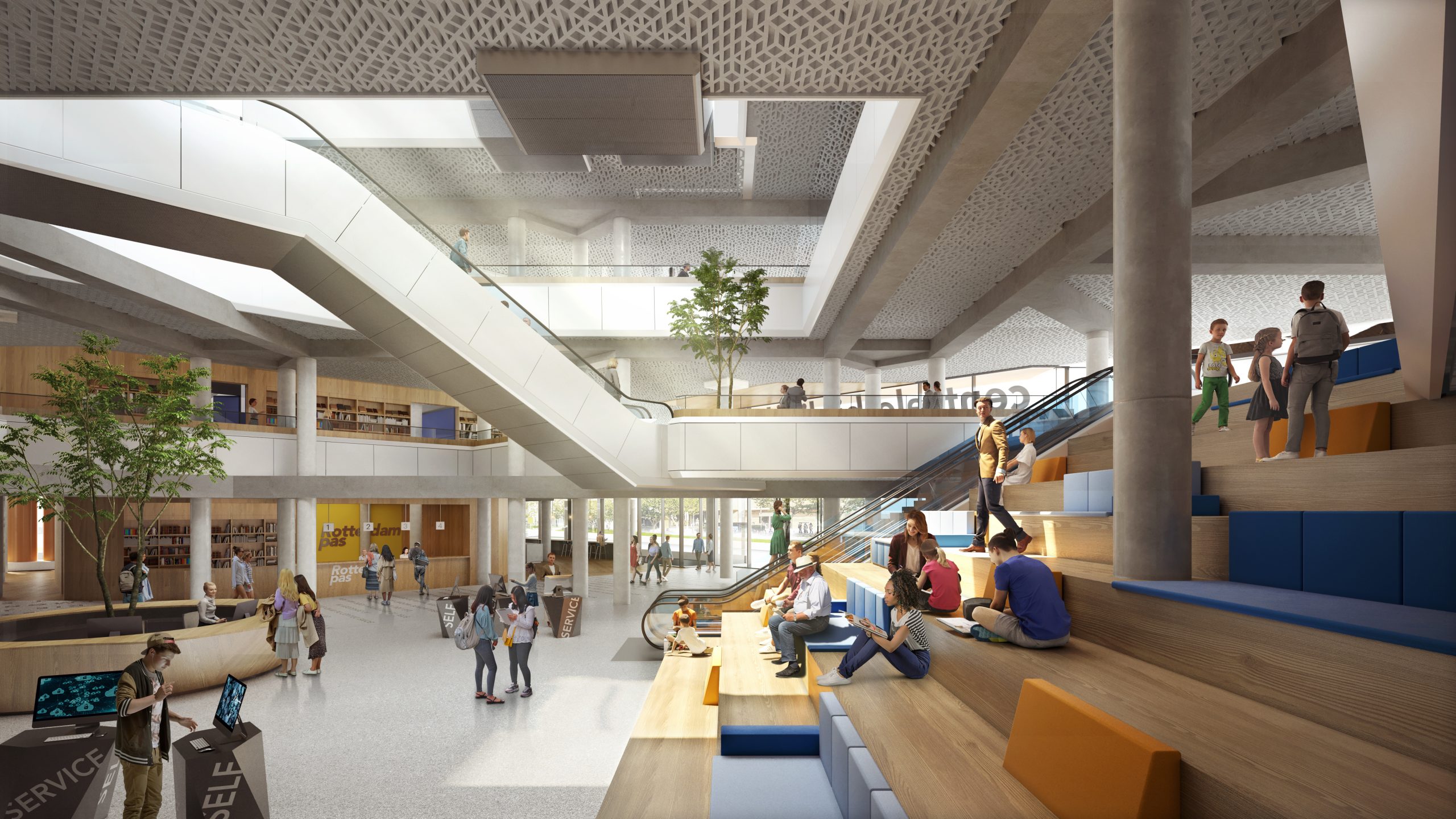 Hoewel er veel verandering gaat plaatsvinden, blijven de iconische gele buizen, de glazen waterval en het blauwe magazijn. Het doel van het nieuwe ontwerp is de bibliotheek nóg meer laten aanvoelen als ‘de huiskamer van de stad’. Daarnaast krijgt de kelder een fietsenstalling met plek voor 1.200 fietsen.