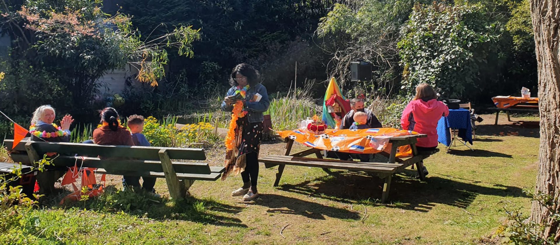 In Delfshaven vinden de wijkbewoners het belangrijk dat de kinderen iets te doen hebben. Daarom hebben ze tussen 11.30 en 13.30 een klein Koningsdag programma bedacht voor 30 kinderen uit de wijk. Er komt een goochelaar langs en verder worden er de traditionele Koningsdag-activiteiten gedaan, zoals koekhappen.