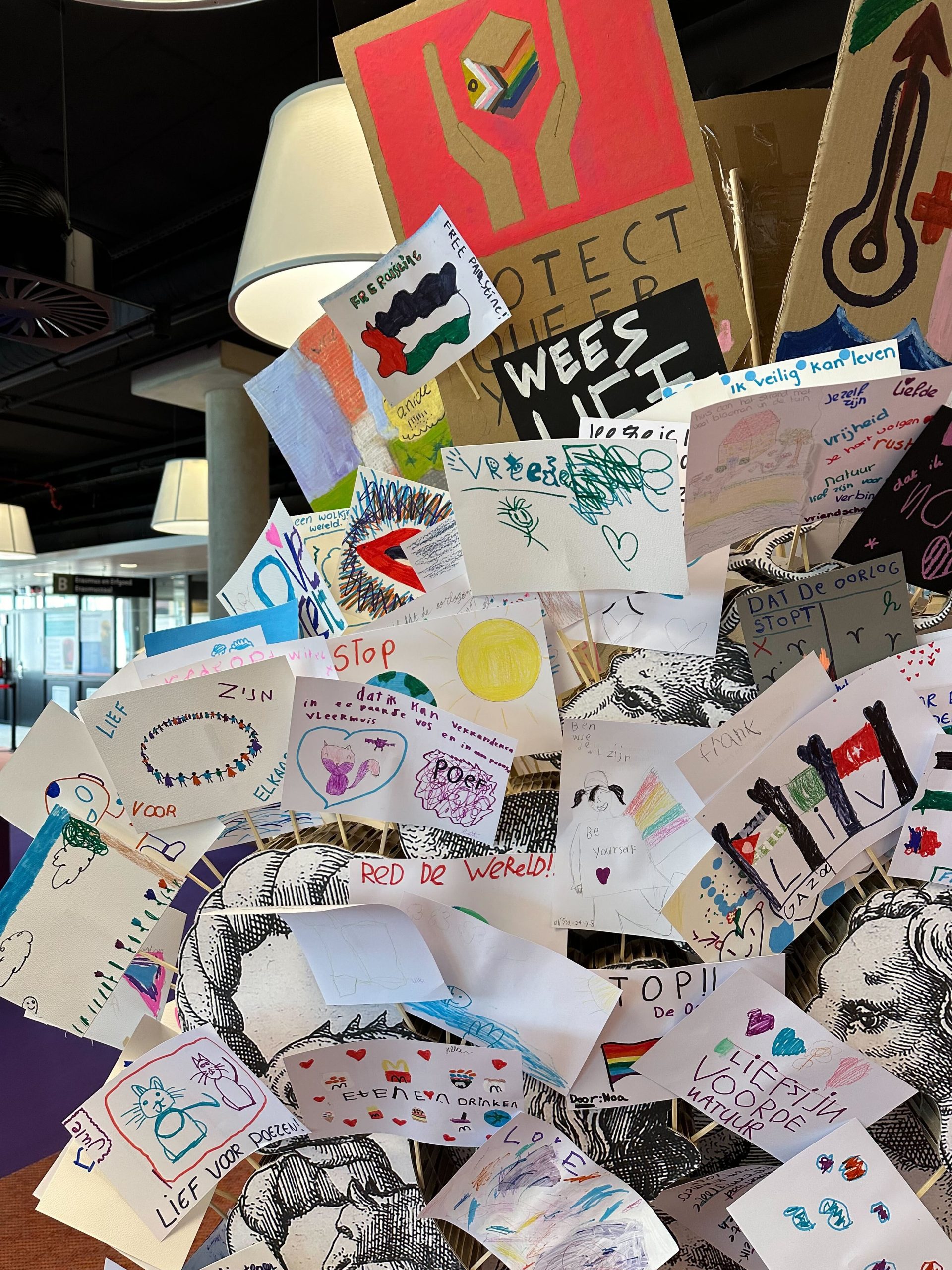 ‘Ik hoop dat de oorlog stopt’, ‘Nooit meer stelen’, ‘Lief voor poezen’; het is een greep uit de wensen die de kleinste Rotterdammers hebben. In de Centrale Bibliotheek kunnen kinderen hun wensen opschrijven en ophangen.