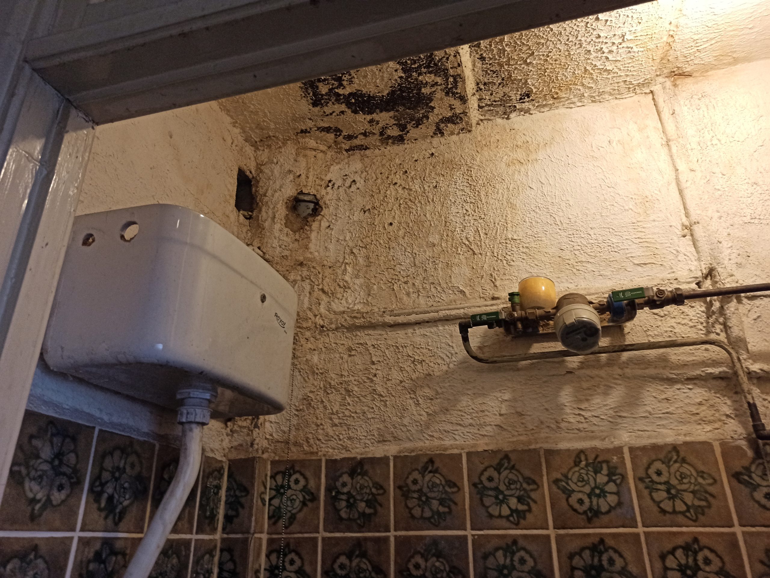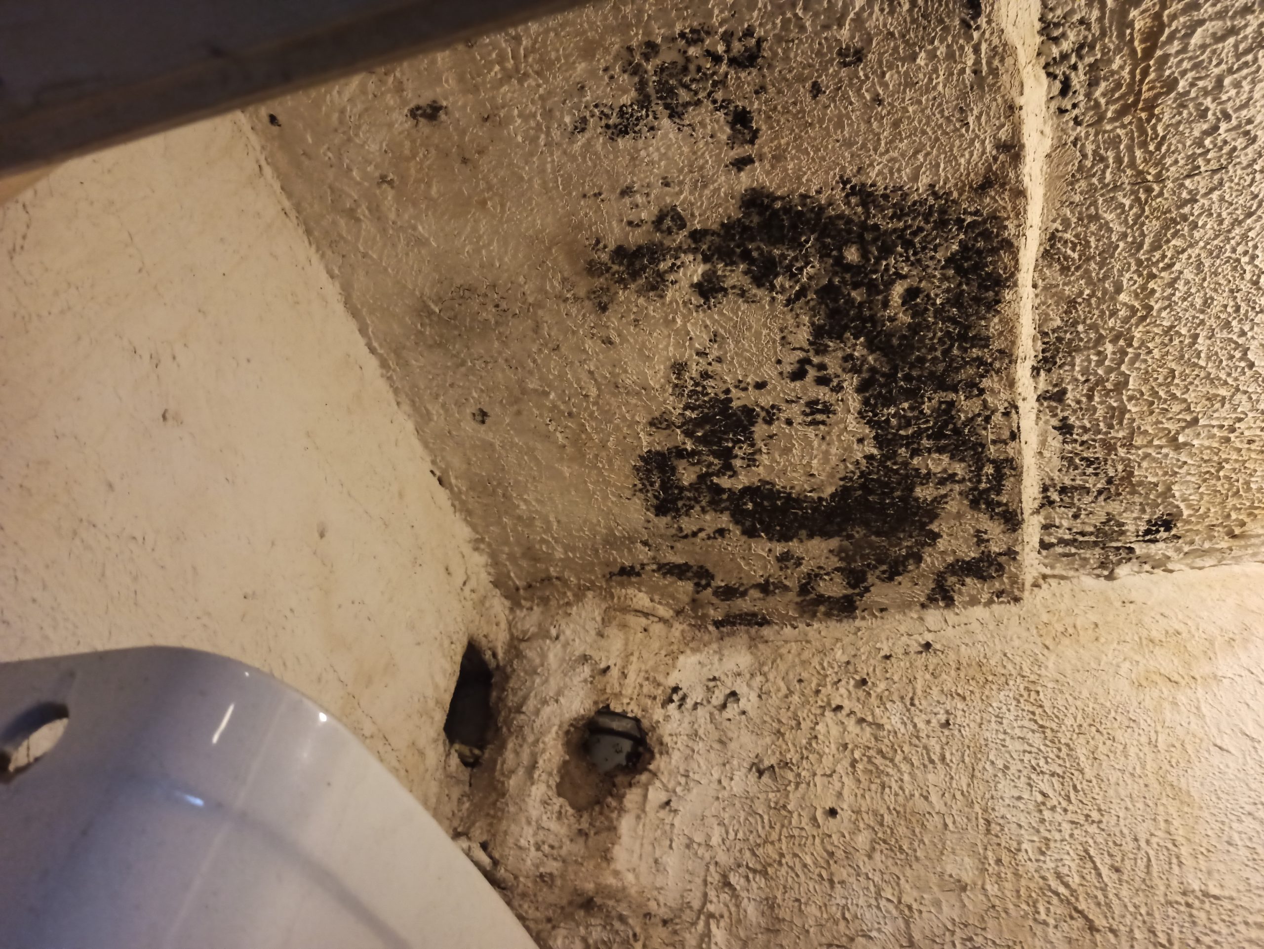 “Ik weet niet wat ik moet doen, we hebben geen geld om te verhuizen. Ook als ik werk verdien ik niet meer dan 200 euro per week, dat is niet genoeg.” Ze laat de keuken en de badkamer zien. De tegels en het aanrecht komen uit de jaren 70. Aan de muur hangt een oude geiser zonder behuizing die bijna uit elkaar valt van ellende. In de badkamer, waar ook dezelfde bloempatroon-tegels hangen, heeft zich een dikke laag zwarte schimmel op het plafond gevormd die je in de woonkamer al ruikt.