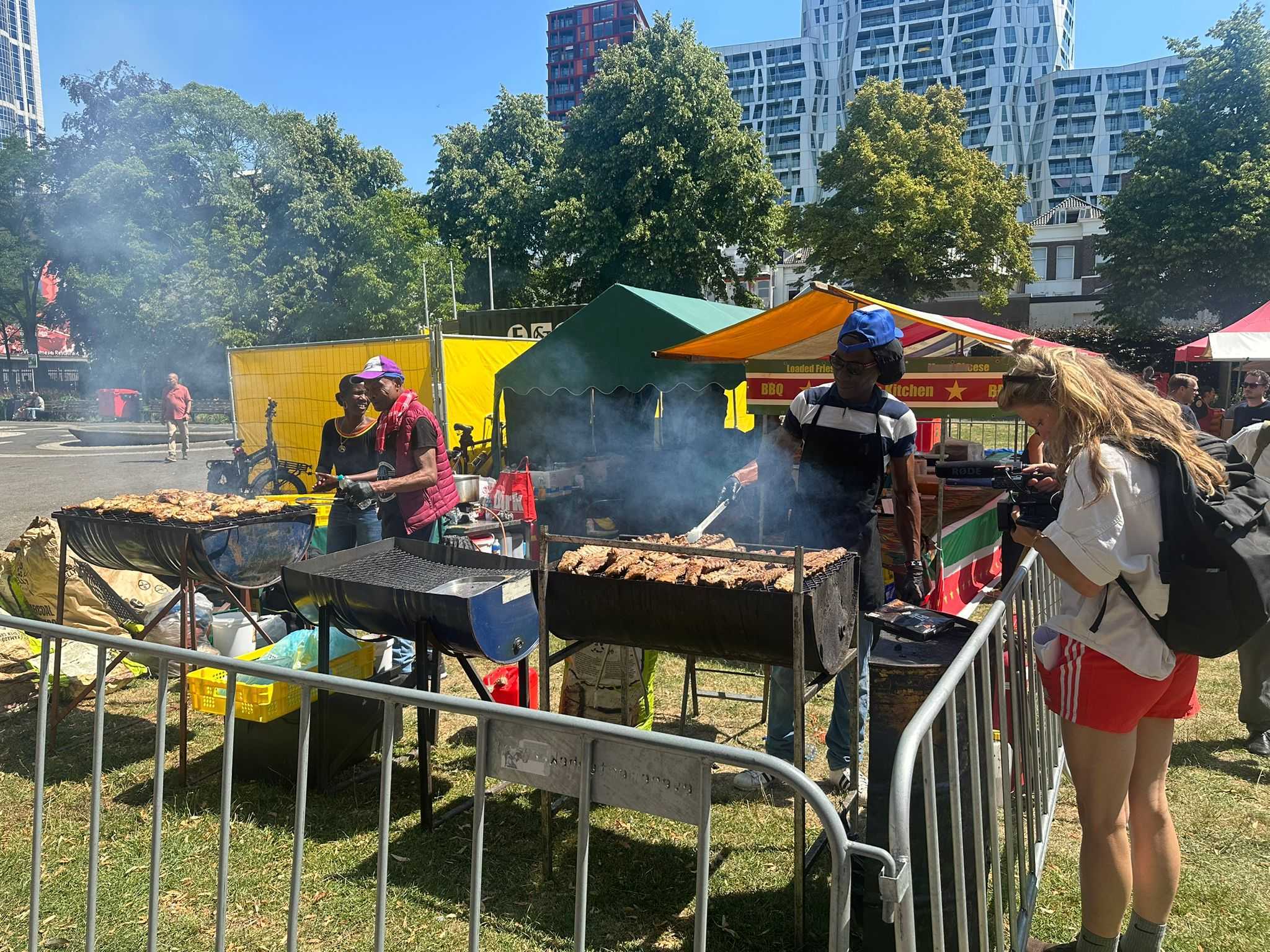 Het festival in het Wijkpark Oude Westen is officieel begonnen. Zoals elk jaar is de BBQ-man aanwezig met zijn barbecue en vlees. Een van onze teams maakt zich klaar hem te interviewen.