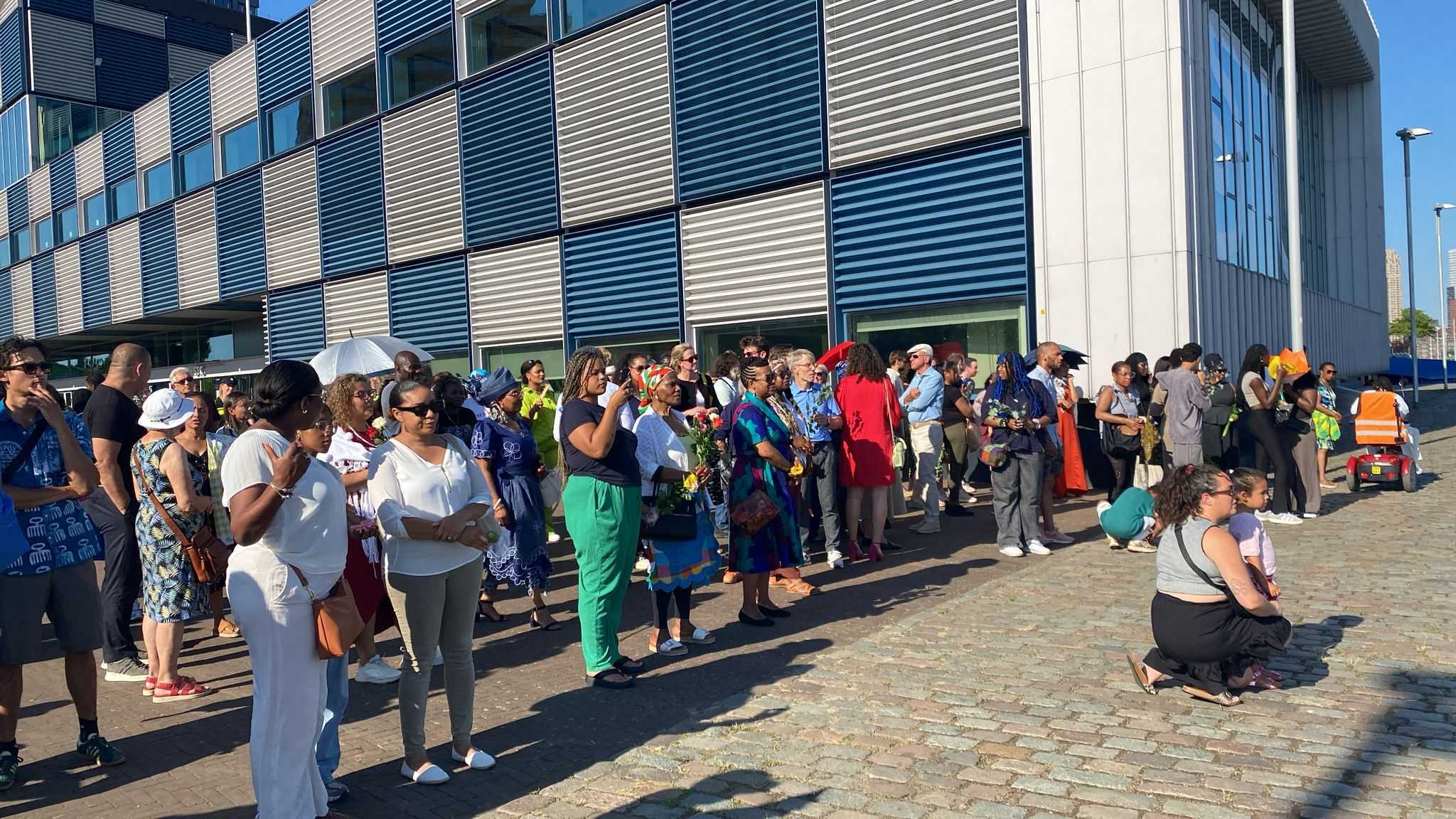 Onze OPEN-verslaggevers Zoë en Farzana zijn er vroeg bij. De festiviteiten moeten nog beginnen, maar zij staan al paraat in het hart van Rotterdam om Keti Koti vast te leggen.