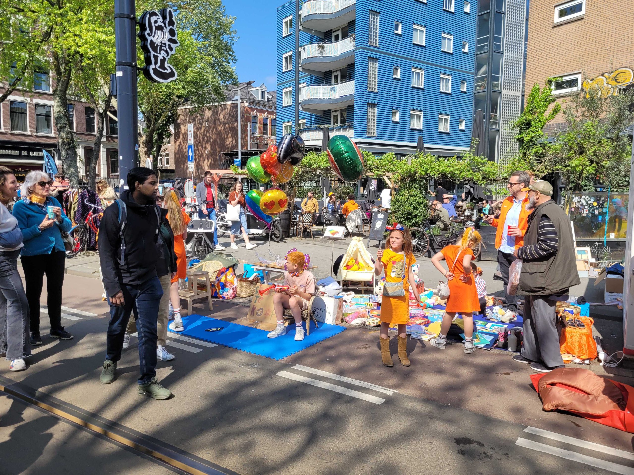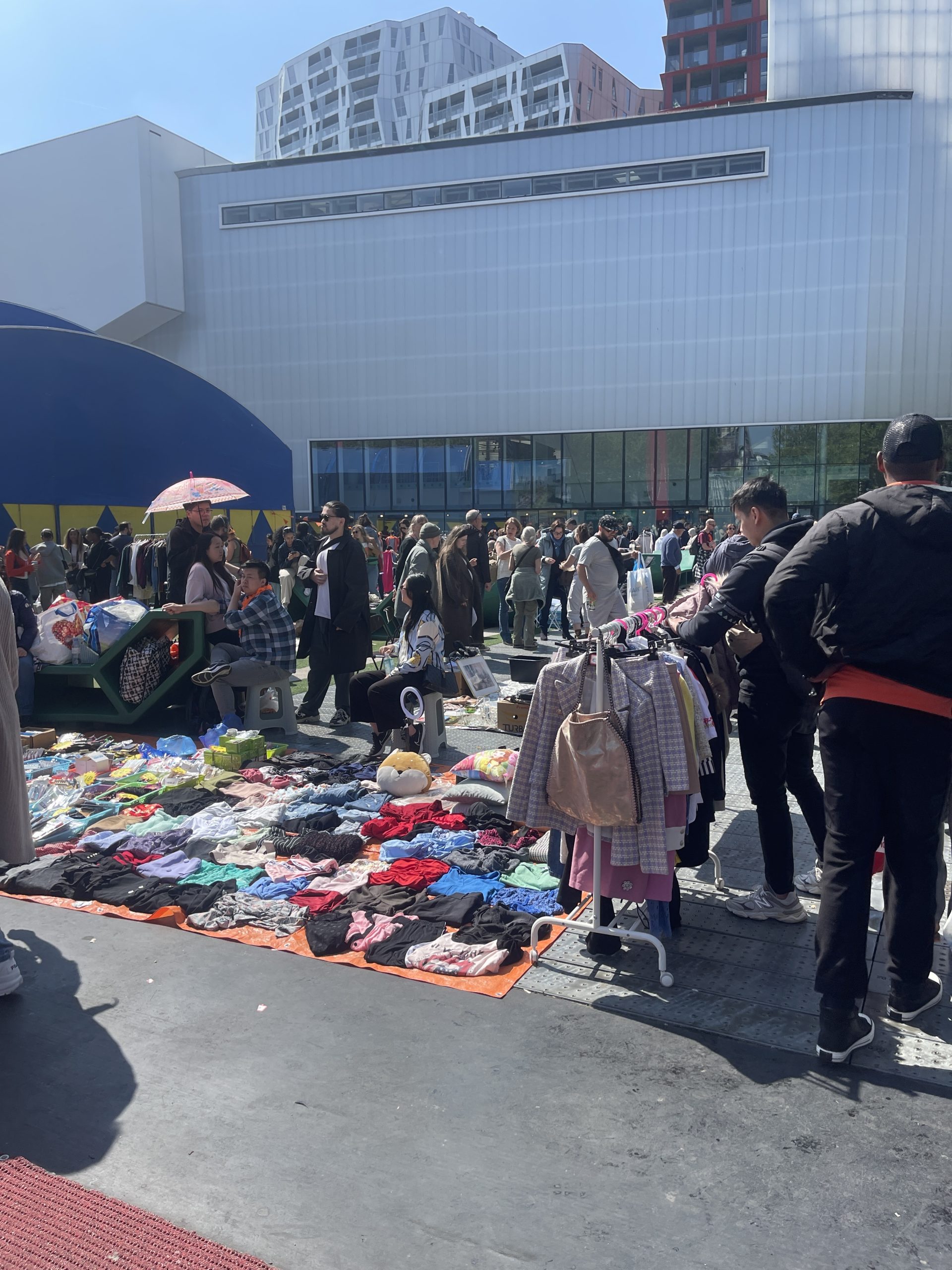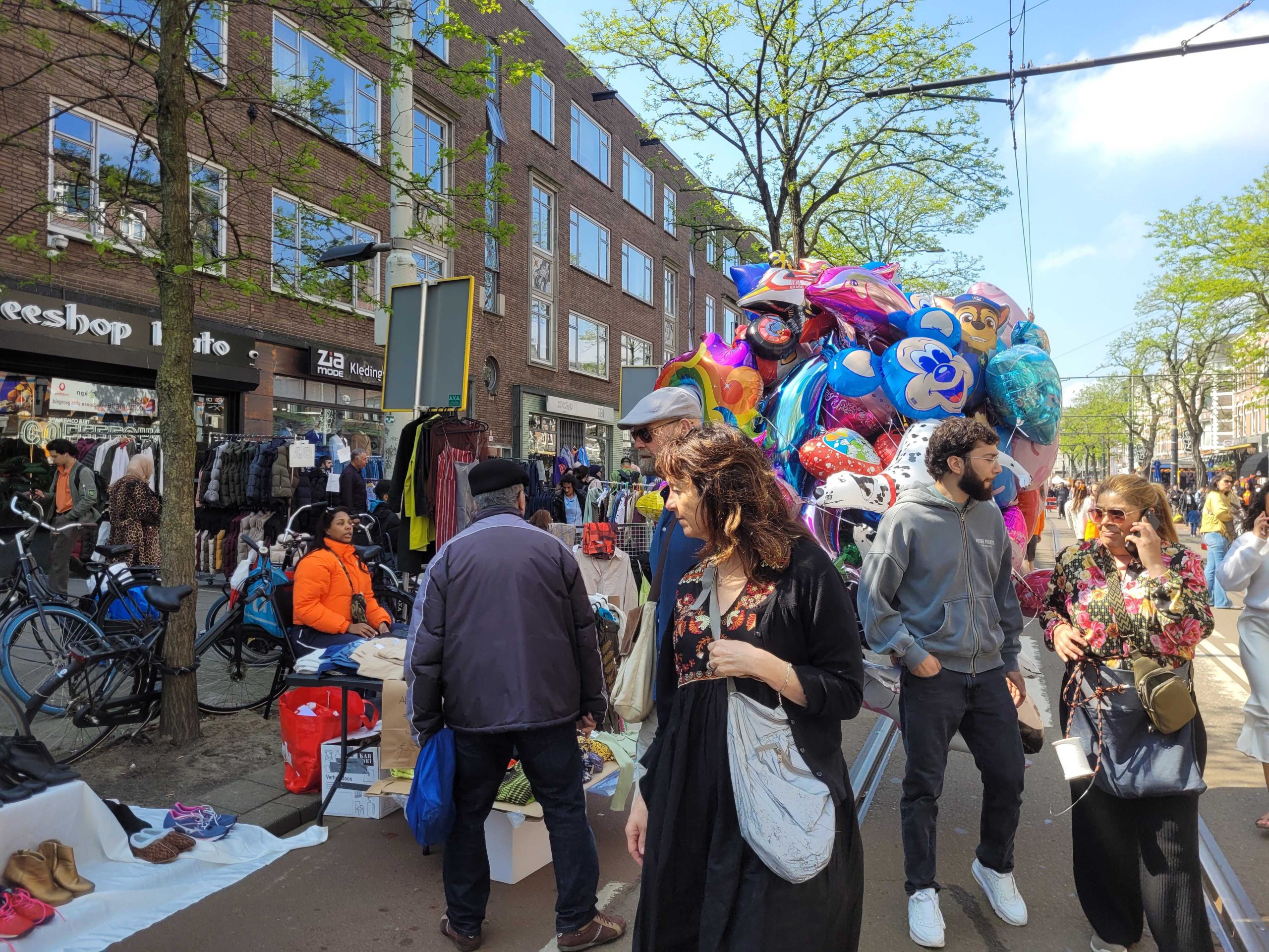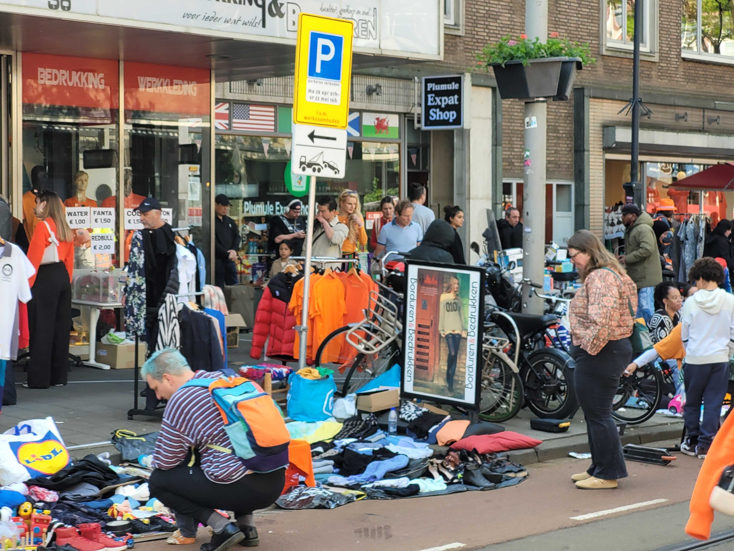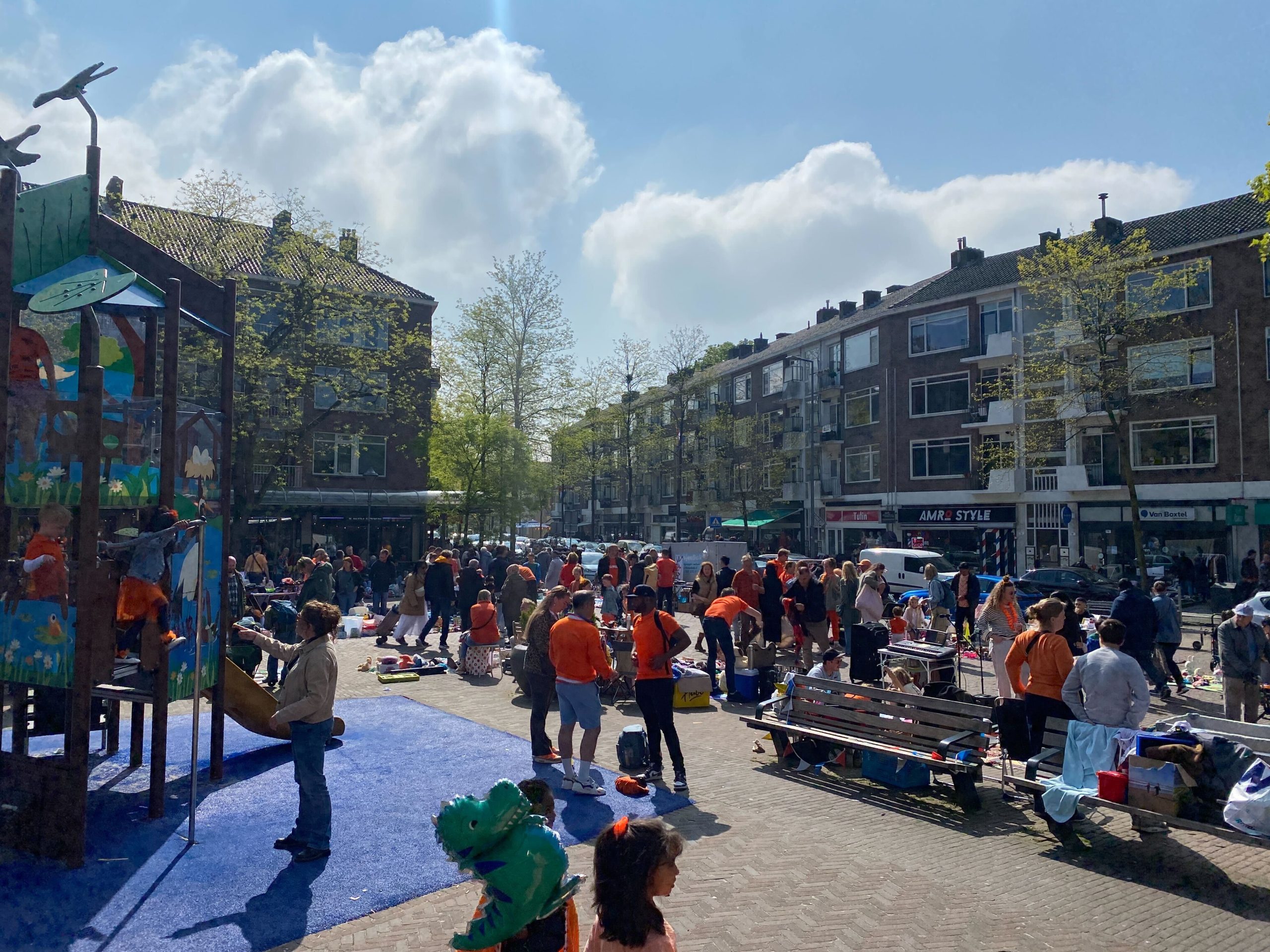 Ook op het Schouwburgplein en het Heemraadsplein is het al vroeg gezellig. De vele kleurrijke kleedjes en kraampjes trekken veel publiek.