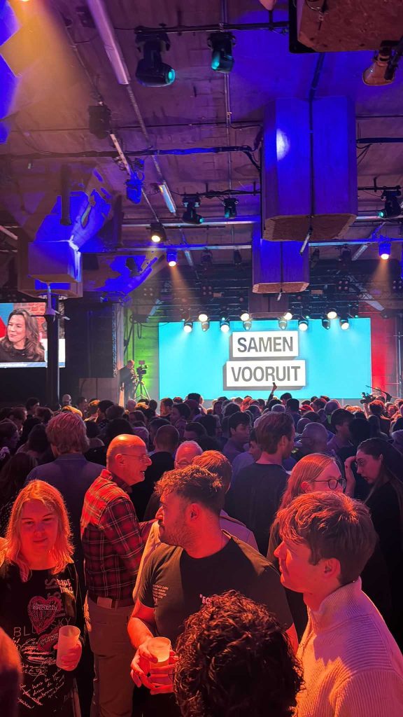 De stemming is minder bij de verkiezingsavond van Groenlinks/PvdA in de Maassilo. Er werd verwacht dat de partij hoog zou eindigen, maar in de meest recente exitpoll staan ze op plek vier. Maar er is nog hoop, misschien komen ze in de regering met D66.
