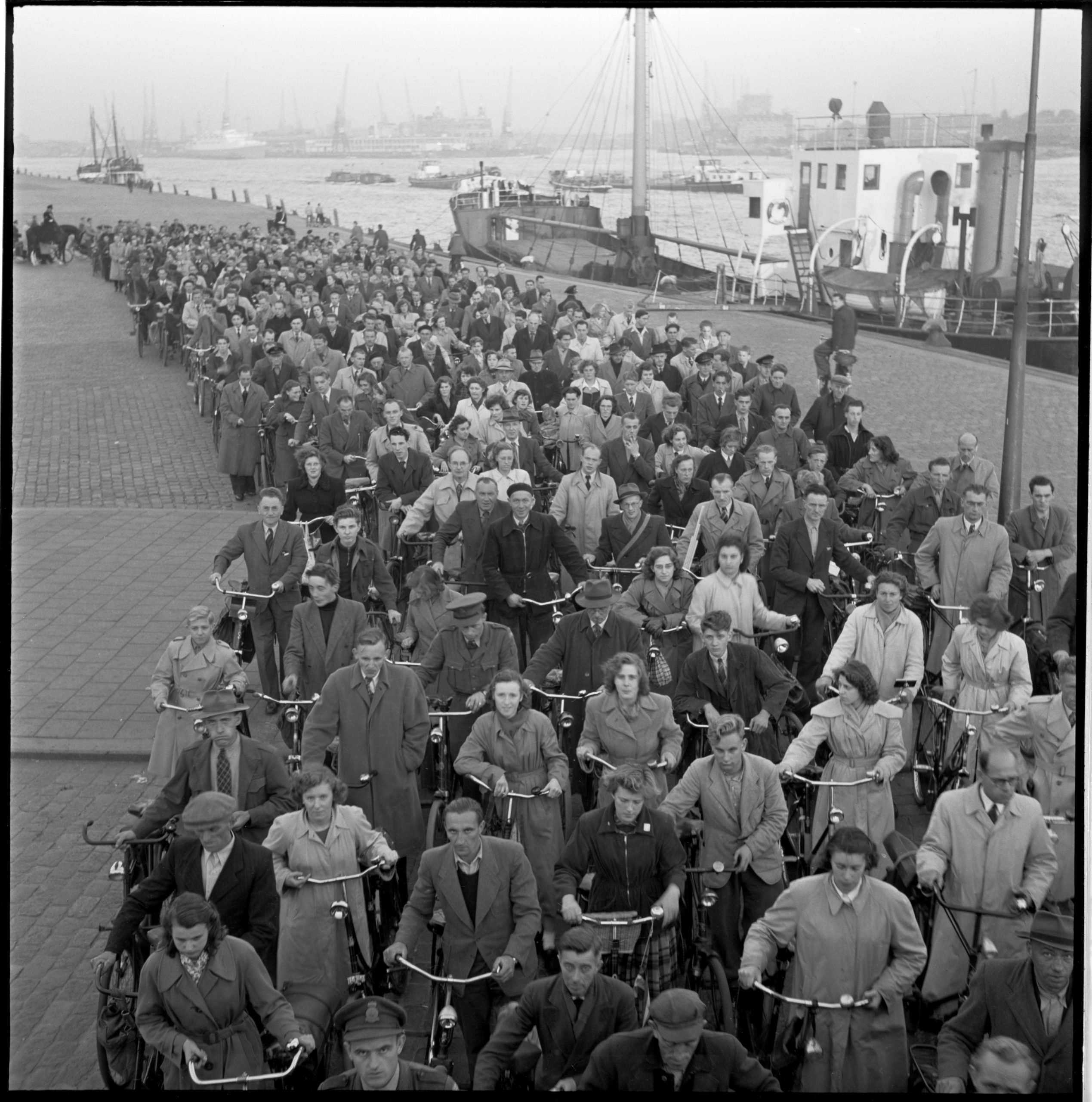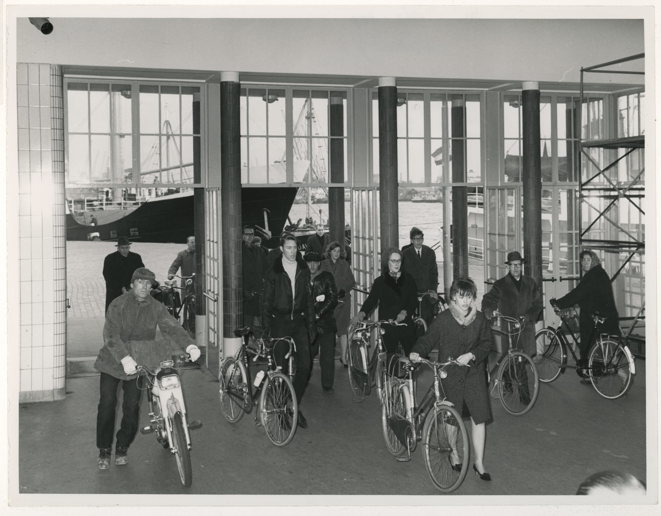 De eerste bezoekers van de Maastunnel