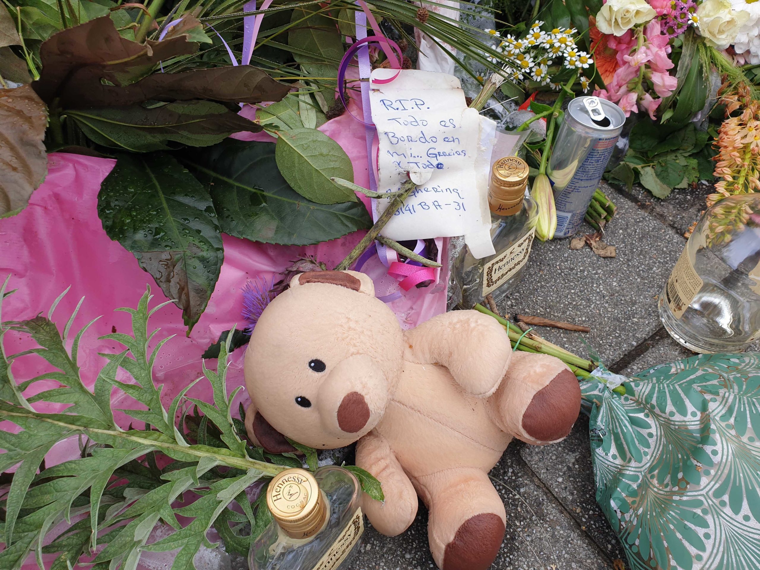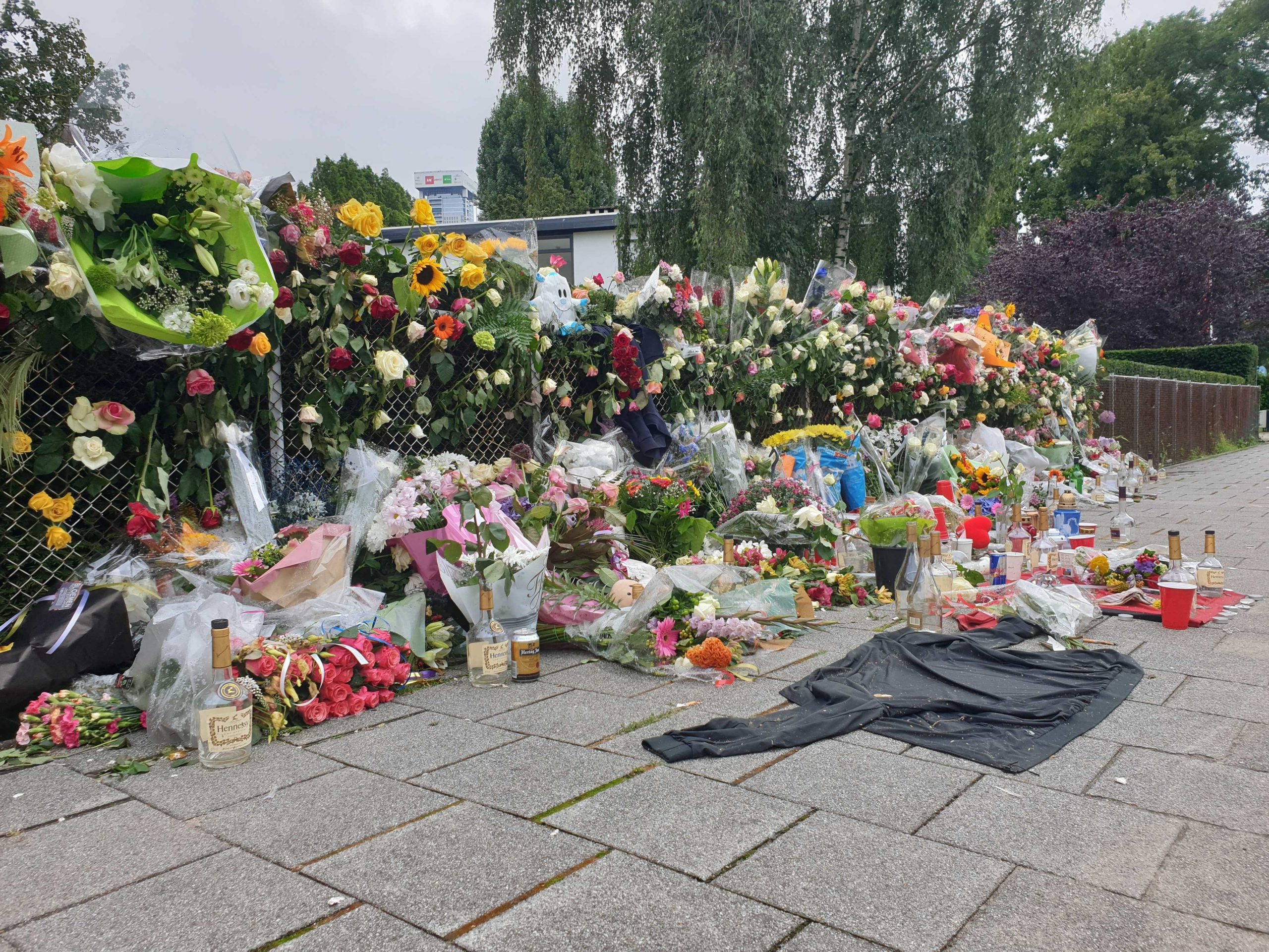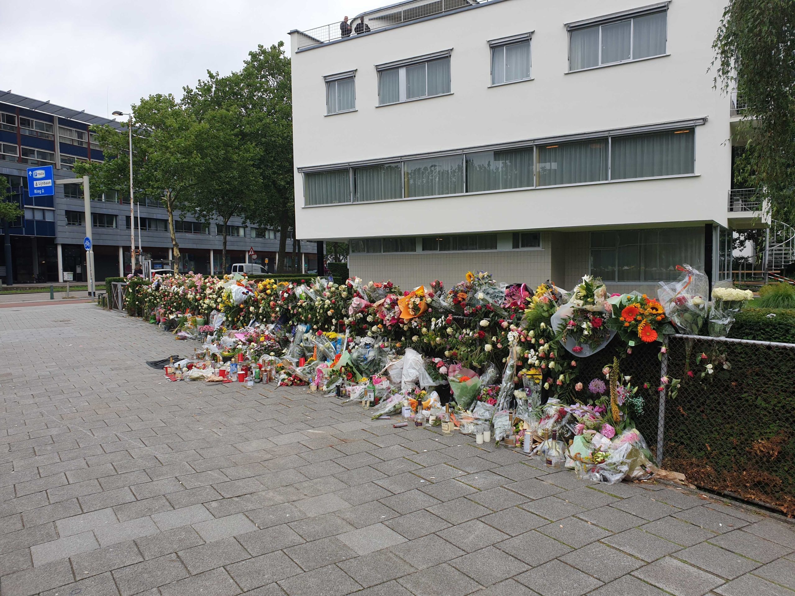 Ondertussen groeit nog altijd de bloemenzee op de plek des onheils. En niet alleen bloemen worden ter hoogte van Huis Sonneveld neergelegd, ook kaarsen en lege drankflessen staan op de plek waar het fatale incident plaatsvond.
