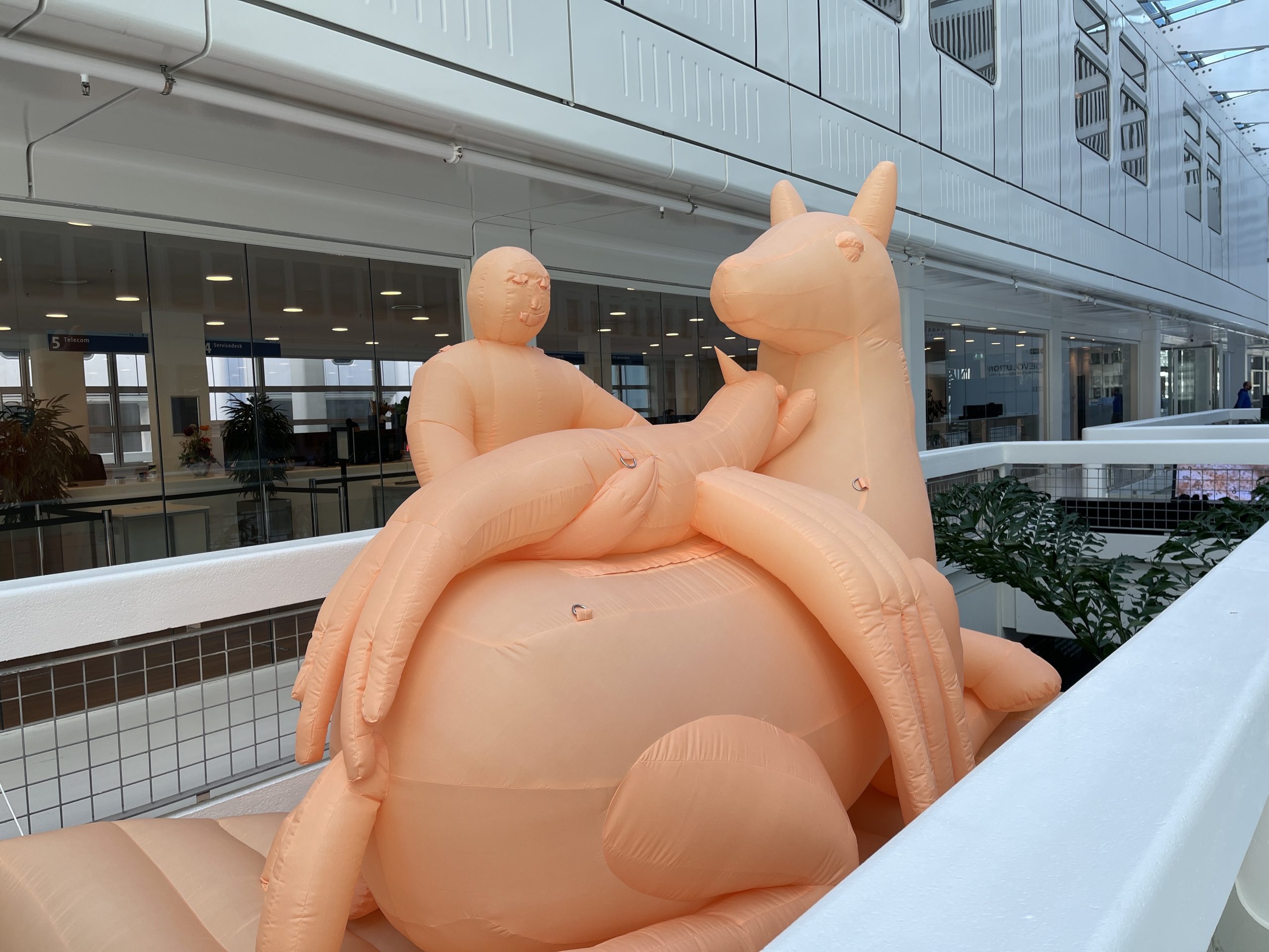 videoprojecties, inspirerende uitspraken van wetenschappers en een groot opblaasbeest; in de passage van het Erasmus MC is een bijzondere expositie te zien. (R)EVOLUTION geeft met acht kunstwerken een beeld van de verandering die door de corona uitbraak plaatsvond in onze maatschappij. Community Manager Inger van Dijk en haar collega Fred Balvert maakten deze werken in samenwerking met Rotterdamse jongeren, kunstenaars en wetenschappelijke onderzoekers.