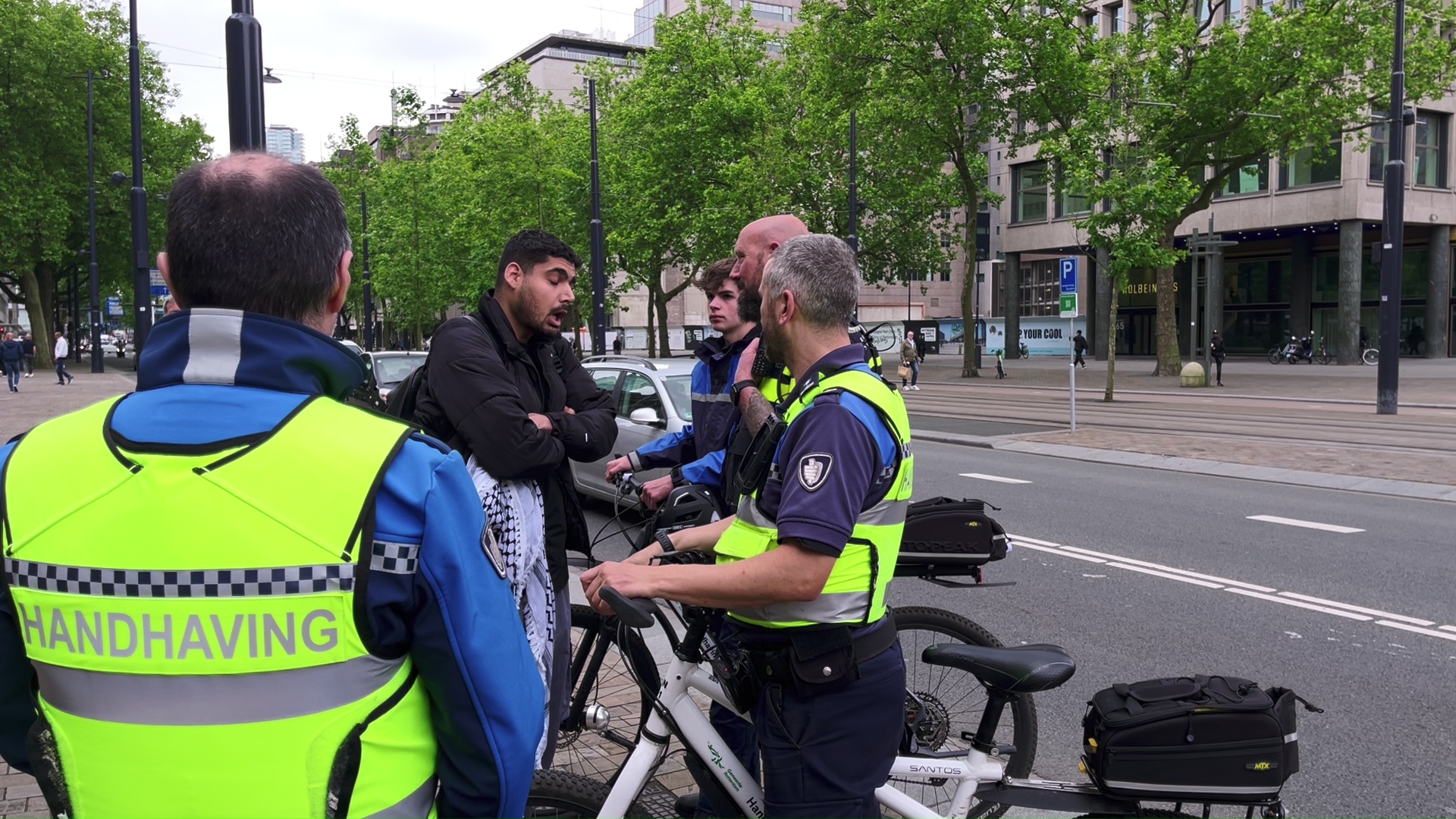 Het tunnelproject zorgt voor enige frictie voor Stadhuis, deze donderdagmiddag. Enerzijds wil Rachel het gesprek faciliteren, maar niet alle pro-Palestina demonstranten, die zich hebben verzameld aan de overkant van de weg, hebben daar trek in. Gesprekken die wel tot stand komen, zijn vredig. Zo leidt een voorbijganger, die in wielerkleding met Israëlische vlag op de mouw aanwezig is, een pro-Palestina demonstrant door de tunnel. Een gesprek volgt, maar de verschillen tussen hen blijken toch te groot om tot overeenstemming te komen.