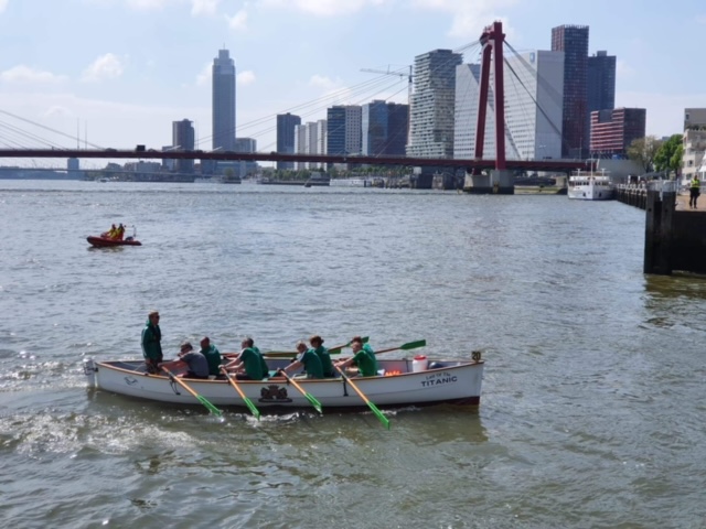 De boot ‘Last of the Titanic’ van Roeivereniging TIOG behaald de eerste plaats tijdens de eerste roeiwedstrijd in Rotterdam sinds 2019. Tijdens de wedstrijd ‘De Memorial Regatta’ konden de Rotterdamse amateurroeiers de strijd aan gaan op eigen water in de Nieuwe Maas.
