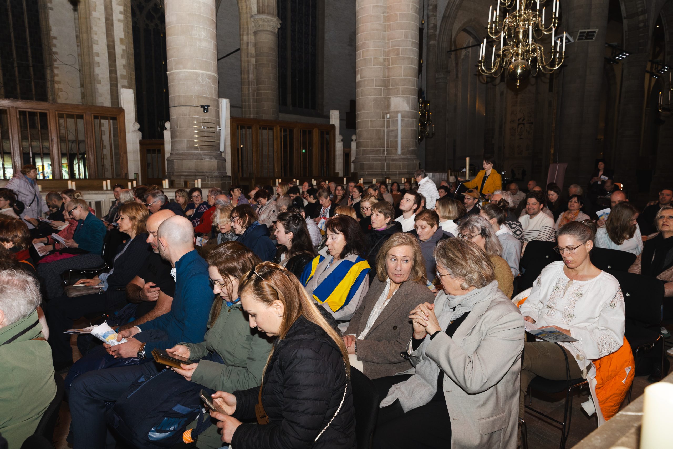 Waar de afgelopen jaren de herdenking in de stad of op de stoep van het stadhuis was, was het dit jaar voor het eerst in de Laurenskerk. En dat was een groot succes. Savchuk kijkt terug op een emotionele, maar mooie avond. “De zaal was helemaal volgeboekt.”