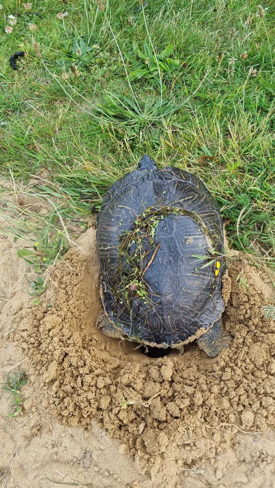 “Ik dacht: dat zal vast wel een lachgasbus zijn, maar het bleek een schildpad.” Toen Paul wat beter keek, was de schildpad niet zomaar in het ruiterpad aan het graven. De schildpad was eieren aan het begraven. Paul was verbaasd, want normaal ziet hij de schildpadden aan de andere kant van de plas. “Die schildpad is dus de hele plas overgezwommen en heeft hier zo’n klein stukje zand gevonden”, vertelt hij enthousiast.