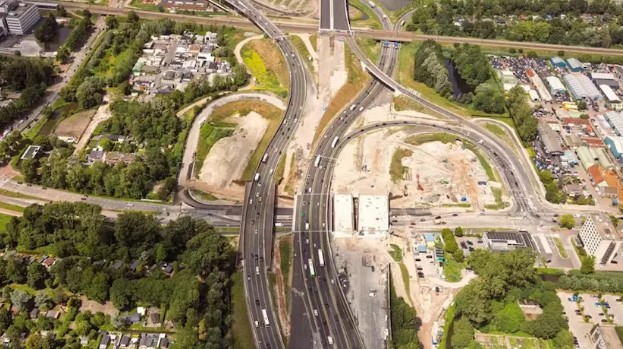 De werkzaamheden hebben te maken met de vervanging van het viaduct over de Hoofdweg. Het oude viaduct is vorig jaar gesloopt en er werd tijdelijk een wegverlegging aangelegd. Nu wordt die weggehaald en schuift de rijbaan naar de definitieve plek op het nieuwe viaduct.