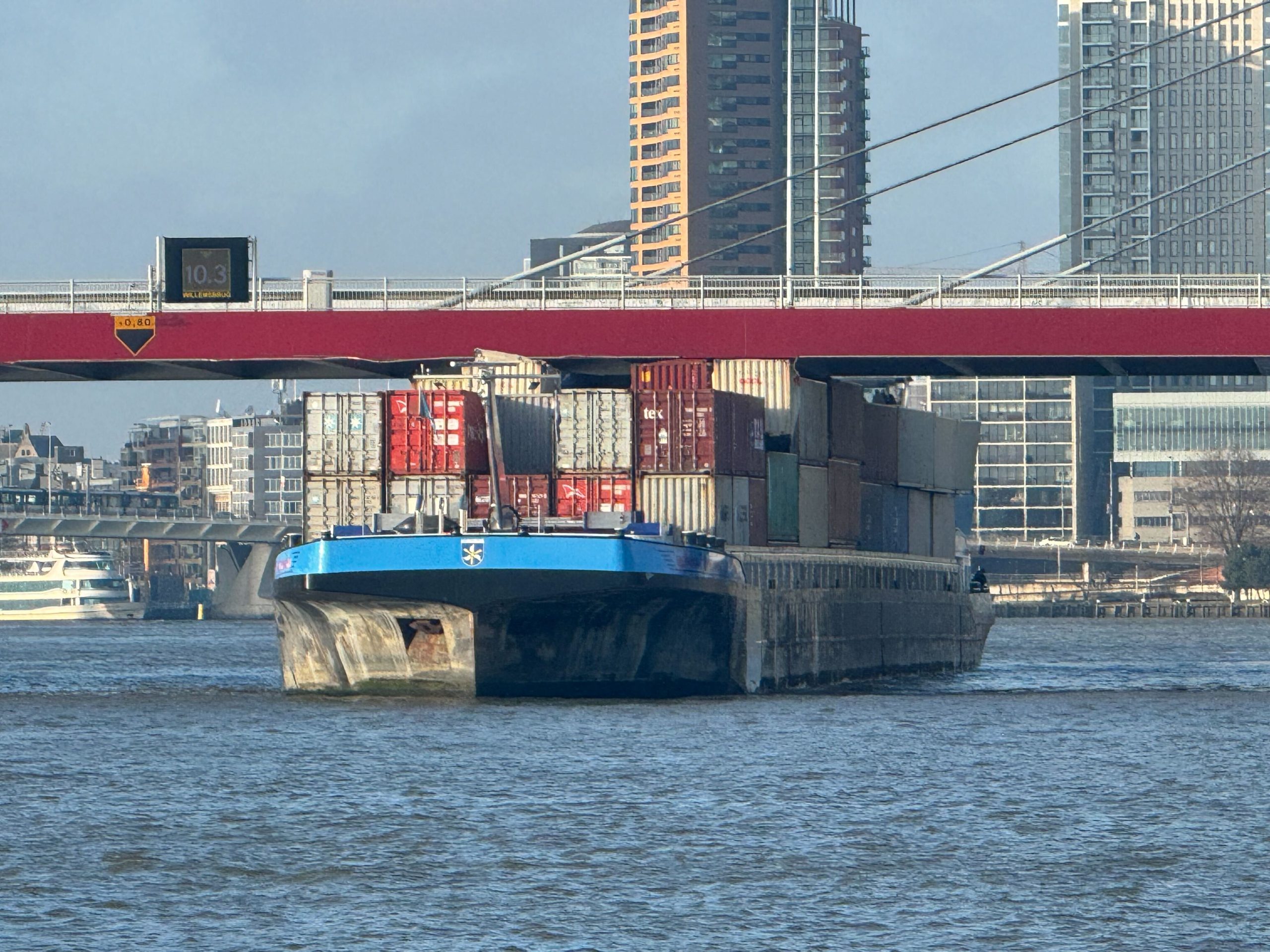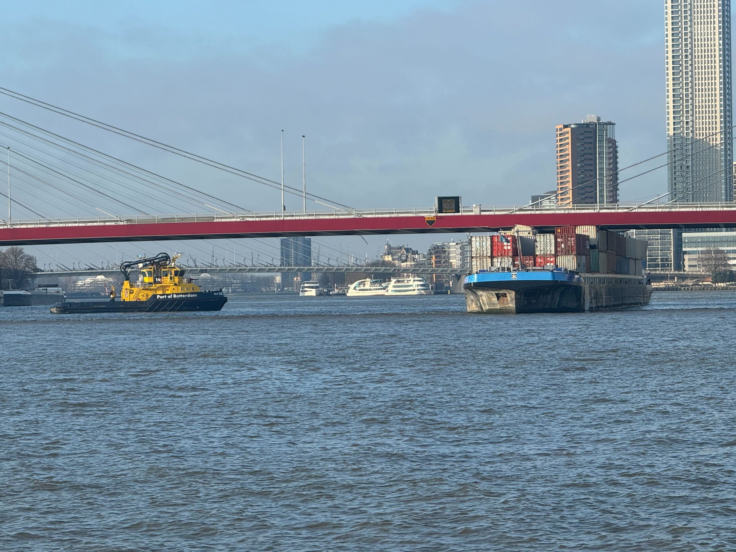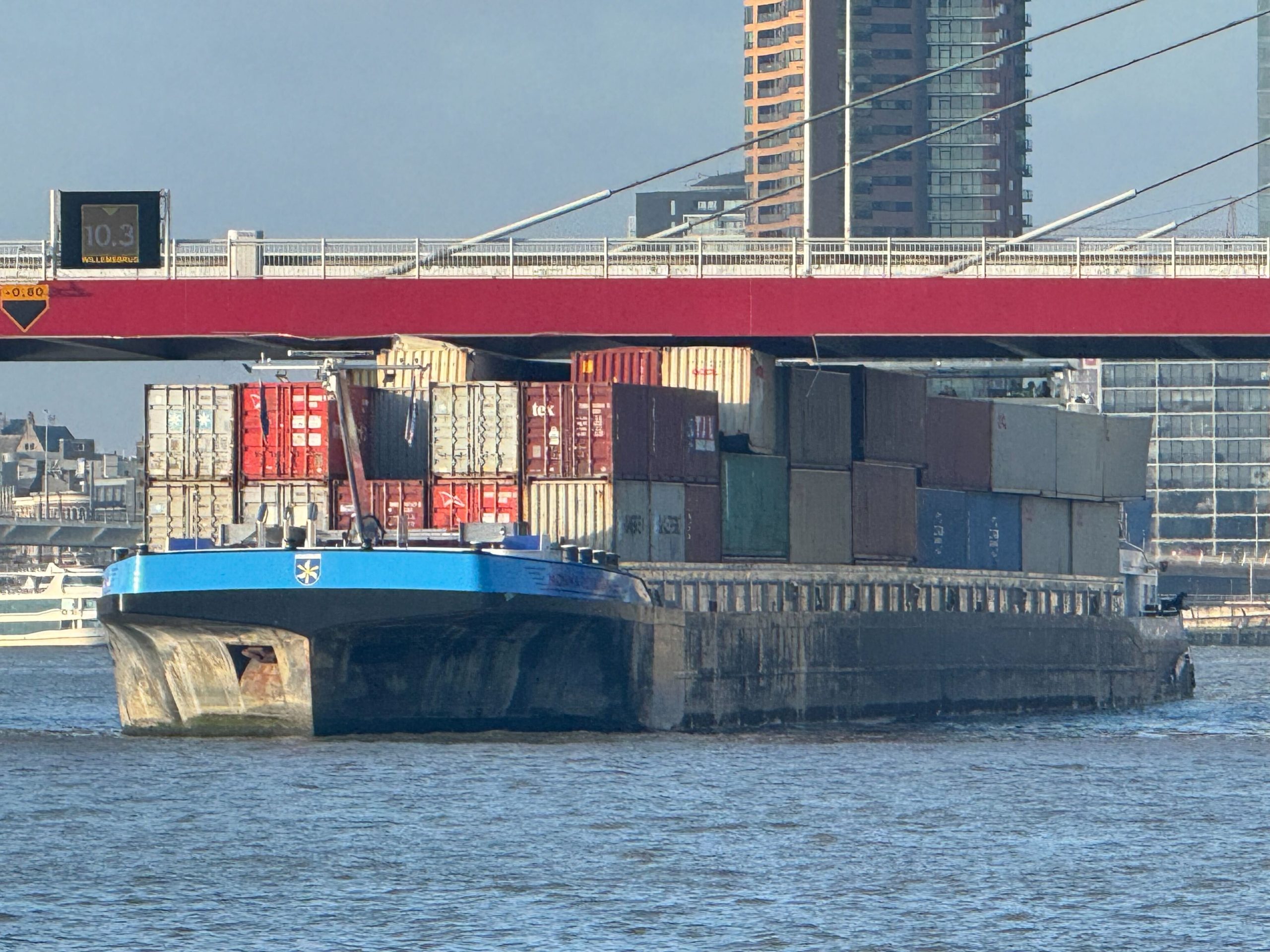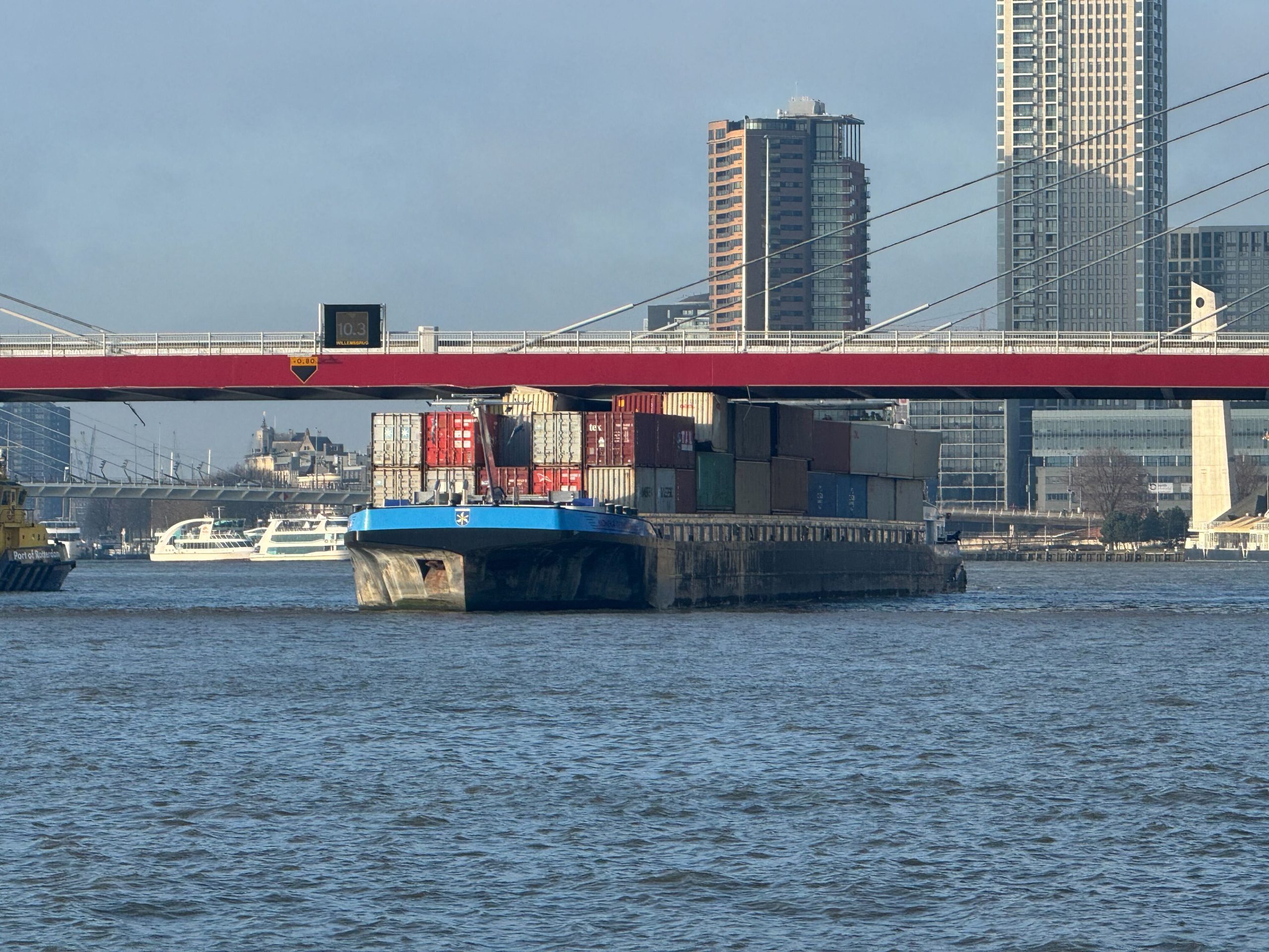 Vrijdagochtend rond half 8 is er een binnenvaartschip tegen de Willemsbrug gevaren. Het schip kwam vast te liggen en er is een container in het water gevallen. De hulpdiensten zijn ter plaatse en de brug is afgesloten. Het is nog onduidelijk hoe lang het gaat duren om het schip weer los te krijgen.