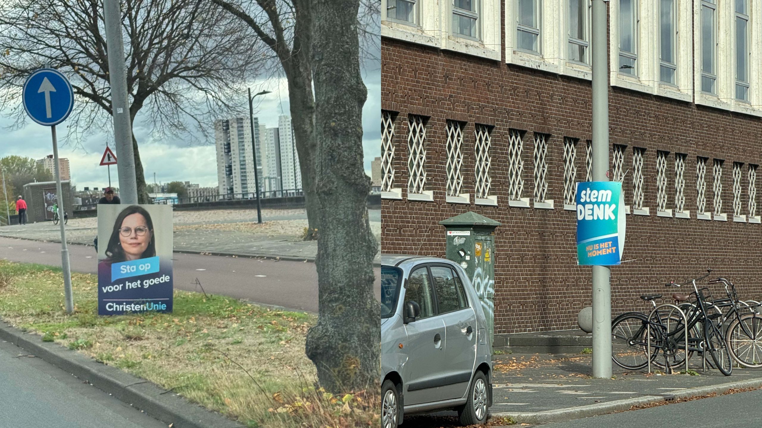Het is weer verkiezingstijd en dat is te zien in de stad. Overal door Rotterdam hangen verkiezingsposters op houten sandwichborden, vastgemaakt aan lantaarnpalen en verkeersborden. Maar wie goed kijkt, merkt: het zijn er dit jaar minder dan voorheen en sommige partijen ontbreken helemaal. Denk doet nog volop mee, D66 heeft de borden juist afgezworen.