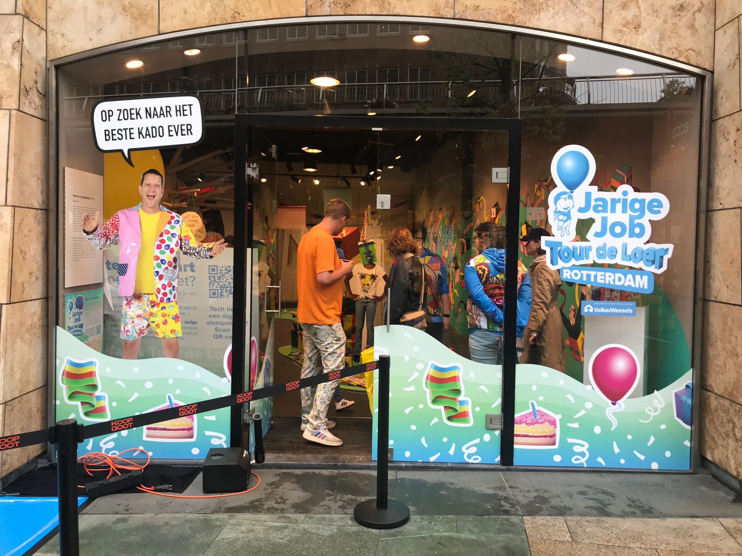 Zaterdagmiddag is in de Koopgoot de Tour de Loer van de stichting Jarige Job geopend. De tour bestaat uit een feestelijke route langs allerlei bijzondere pop-up-locaties in Rotterdam. Stichting Jarige Job wil op deze manier ieder kind een herfstuitje geven en ook de kinderen die het thuis wat minder breed hebben helpen om bijvoorbeeld toch hun verjaardag te vieren.