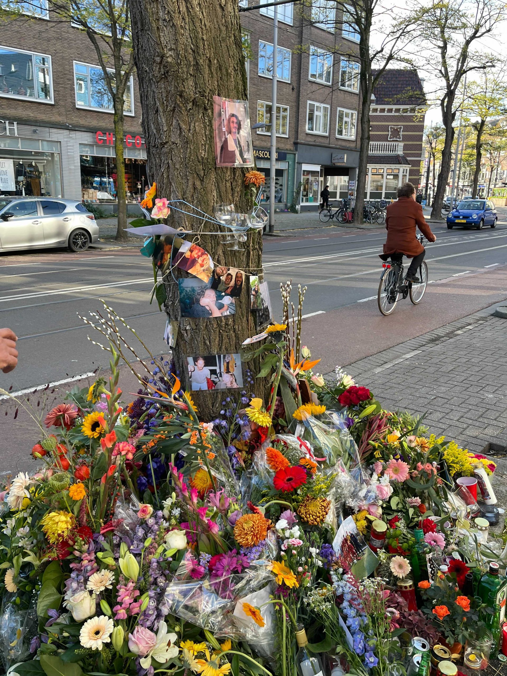 Wie over de Nieuwe Binnenweg loopt, ter hoogte van de de Bonaparte, kan dan stilstaan bij een bloemenzee die is neergelegd voor de 25-jarige Floris van Mulligen die meer dan een week geleden is overleden in het ziekenhuis na een val met de fiets.