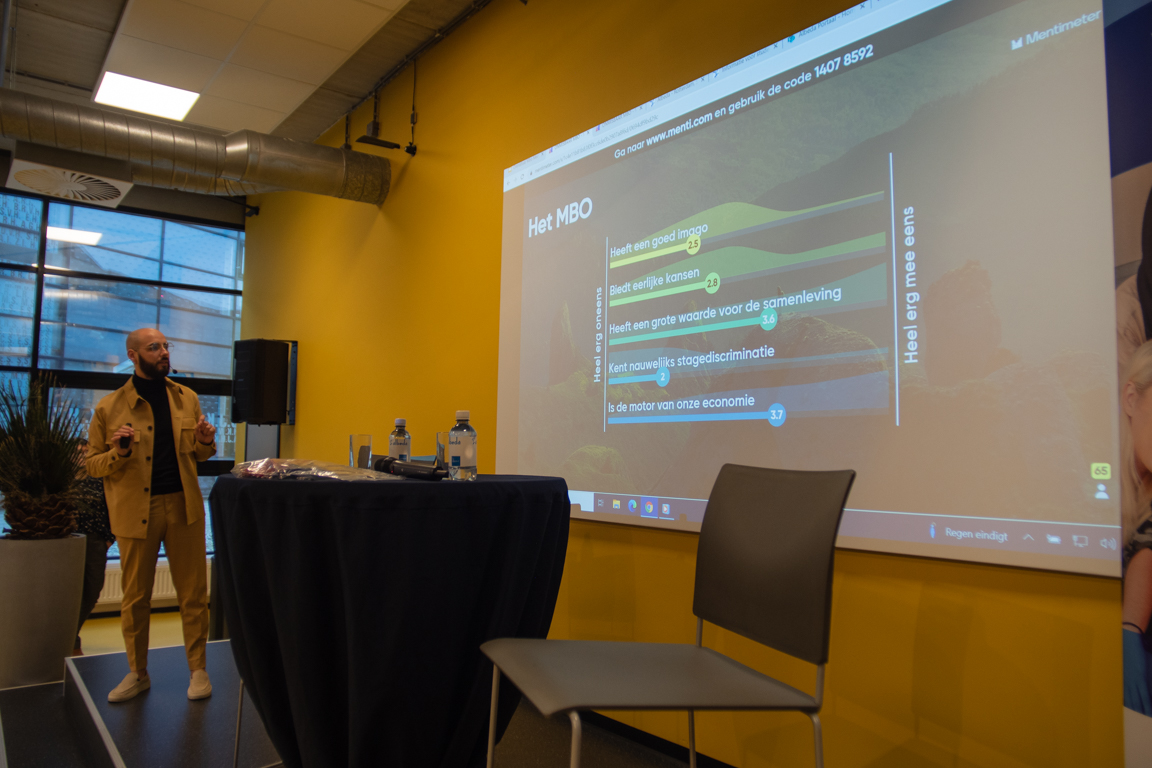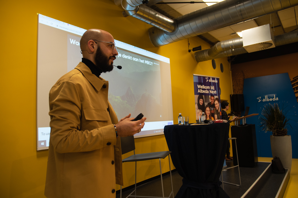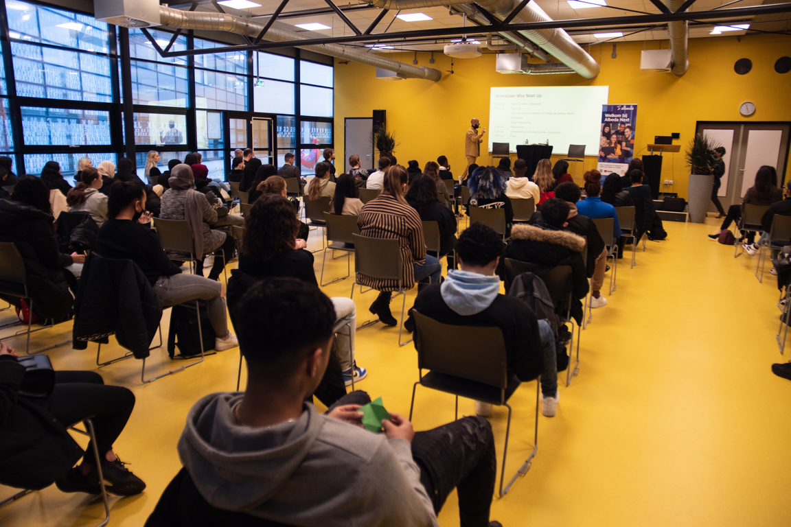 “Er wordt al veel gepraat óver jongeren, daarom willen we vandaag in gesprek mét jongeren.” Dat is het uitgangspunt van ‘De Onmisbaar Mbo Meet Up’, die gepresenteerd werd door programmamaker Karim Amghar op donderdag 10 februari in het Albeda, locatie Rosestraat. Ruim 75 studenten gingen in debat met docenten, ondernemers en (kandidaat)raadsleden over de kracht en uitdagingen van het mbo.