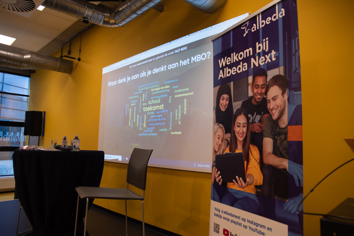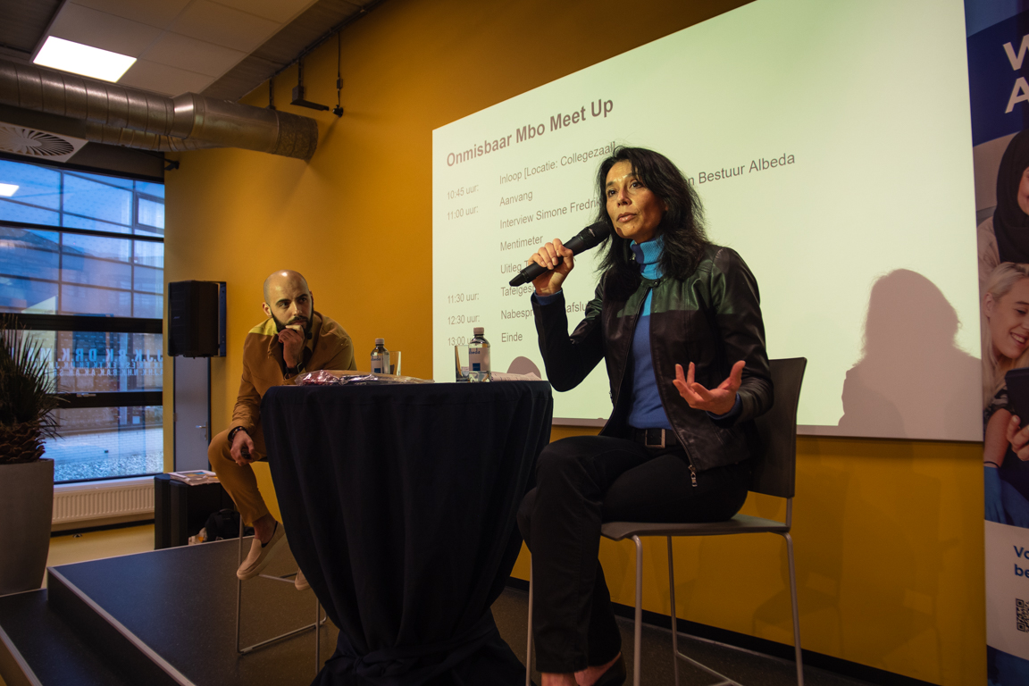 Tijdens de meetup worden vraagstukken uit de OPEN Rotterdam-serie Onmisbaar mbo verder uitgediept en gaan genodigden onder leiding van docenten van het Albeda op zoek naar mogelijke oplossingen. Ook spreekt Amghar met Simone Fredriksz, lid van het college van bestuur van het Albeda, over het imago van het mbo.