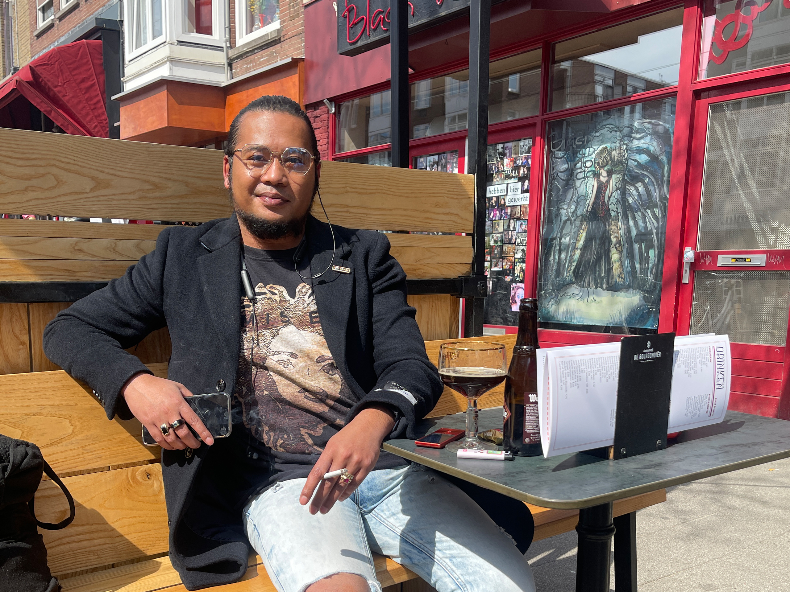 Het is iets voor 12.00 uur. “We zijn er klaar voor”, zegt Tim. “Het is bijna twaalf uur en ik verwacht wel dat iedereen zo direct per bus komt”, grapt hij. De terrassen mogen weer open en dus ook die van het enige bruine café in Kralingse Veer: Café de Amstelbron. Eigenaren Tim Ang en zijn vrouw Yvonne Ang – die de kroeg zes jaar hebben – zijn blij dat ze weer mogen, maar hopen stiekem ook op meer versoepelingen. “We zijn nu wel erg afhankelijk van het weer.”