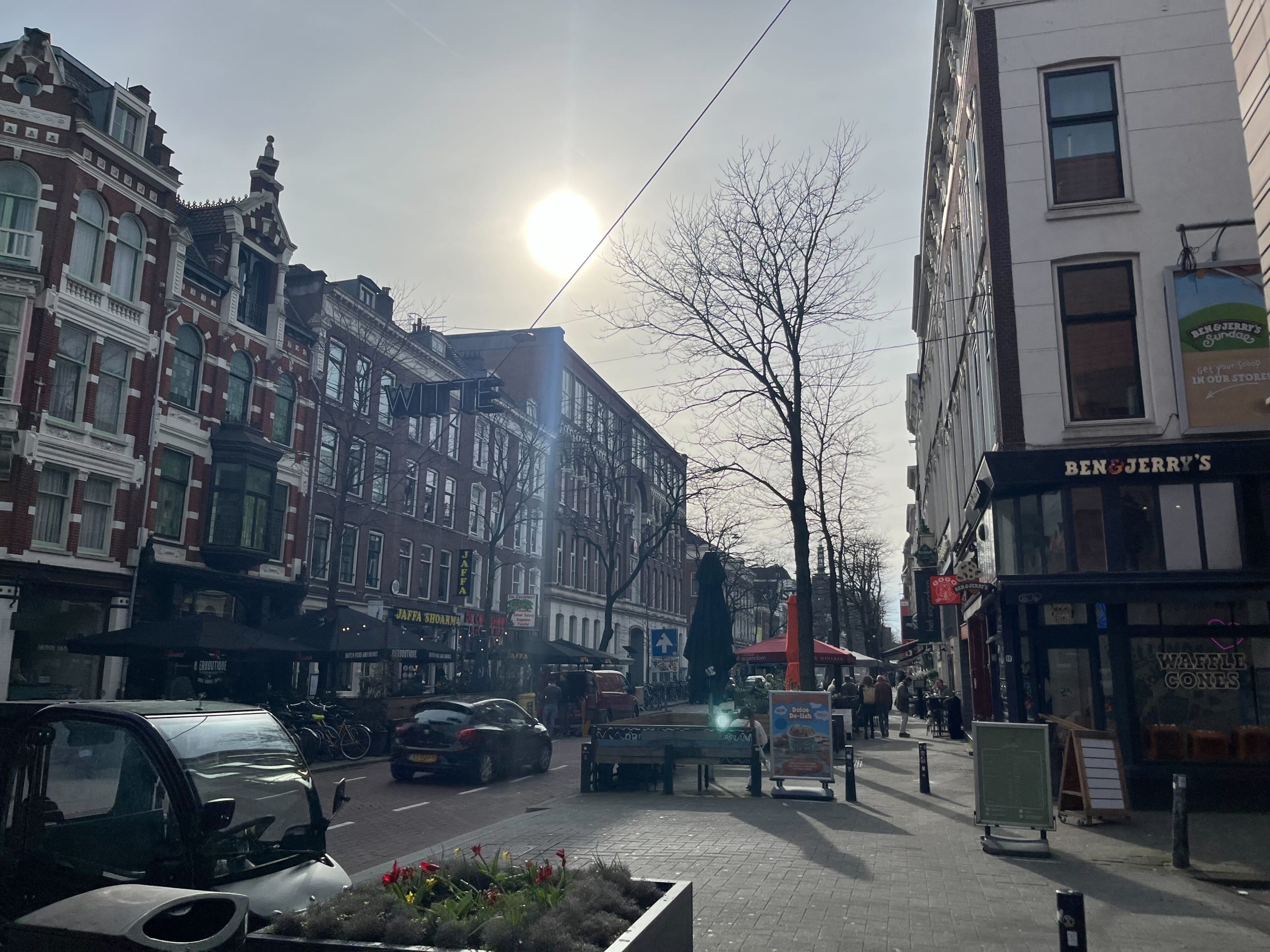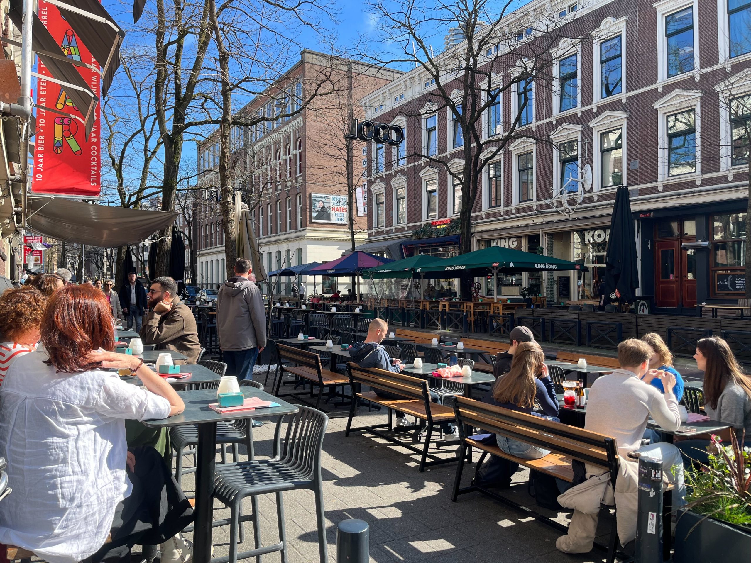 Het is op donderdag 14 maart een zonnige lentedag met een temperatuur van 17 graden. Rotterdam geniet van de eerste tekenen van de lente die dichterbij komt. De inwoners van de stad genieten van de warme zonnestralen en de gezelligheid op het terras.