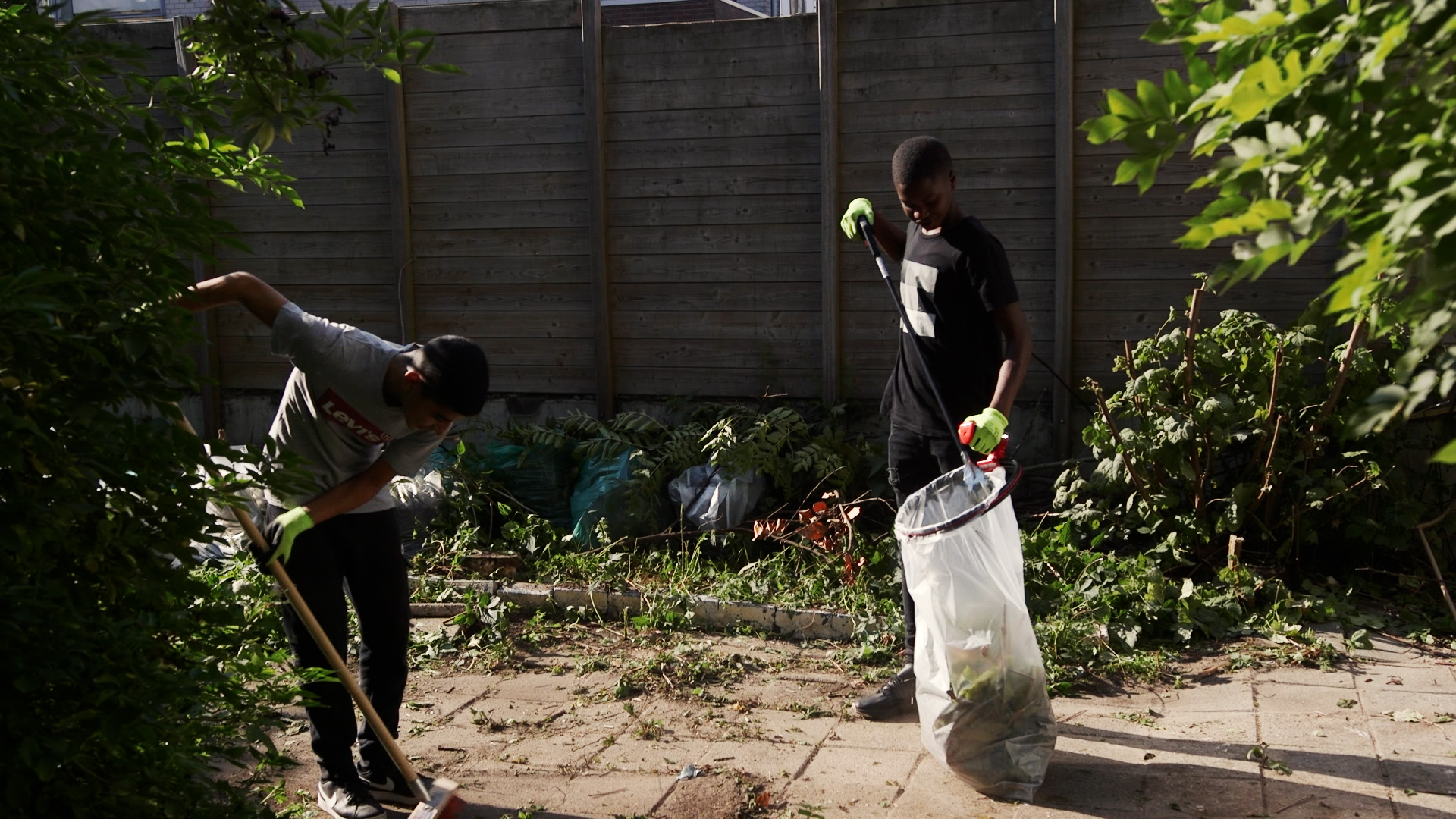 Vandaag wordt er getuinierd in een matig onderhouden tuin van een Vestia huurder, die daar op haar oude dag zelf niet meer aan toe komt. De groep participerende jongens, een vriendengroep, haal zichtbaar plezier uit het werk. Vanwege het zakcentje, de grappen en grollen die gemaakt worden, maar ook omdat ze graag iets willen betekenen voor hun eigen wijk.