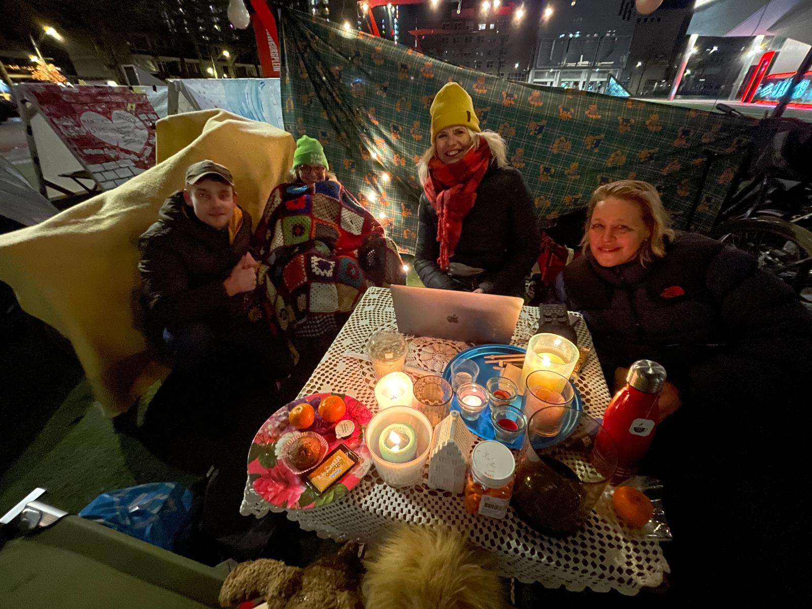 Tientallen mensen waren aanwezig bij de manifestatie. Vanuit de Pauluskerk blikken Mieke, Babs en Sandra terug op een mooie nacht op het Schouwburgplein. “Er was een hele mooie sfeer. We hebben ons best gedaan en onze bijdrage geleverd”, vertelt Mieke. De vrouwen maakten uiteindelijk vijftien verschillende podcasts. “Het gesprek met Michel heeft ons het meest geraakt”, vervolgt ze. “Een man van vierendertig jaar die al vijf jaar op straat woont. Terwijl het enige wat hij gewoon wil doen, is mee kunnen doen met de samenleving. Die jongen hoort gewoon niet op straat.”