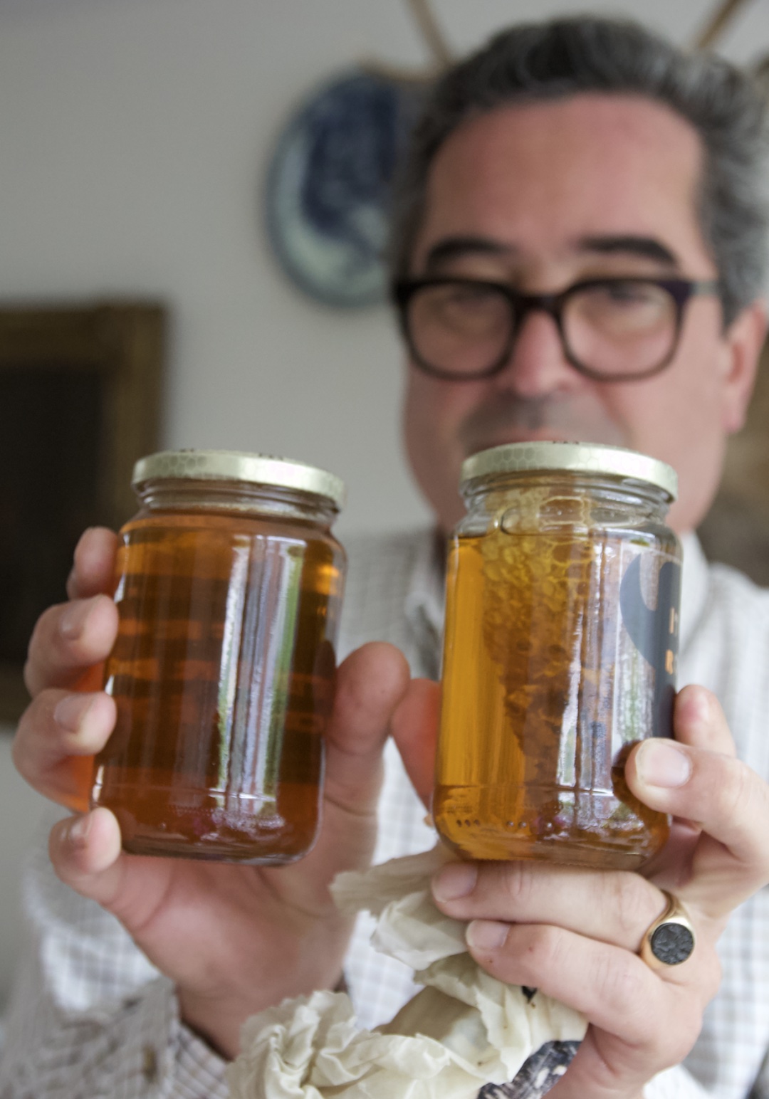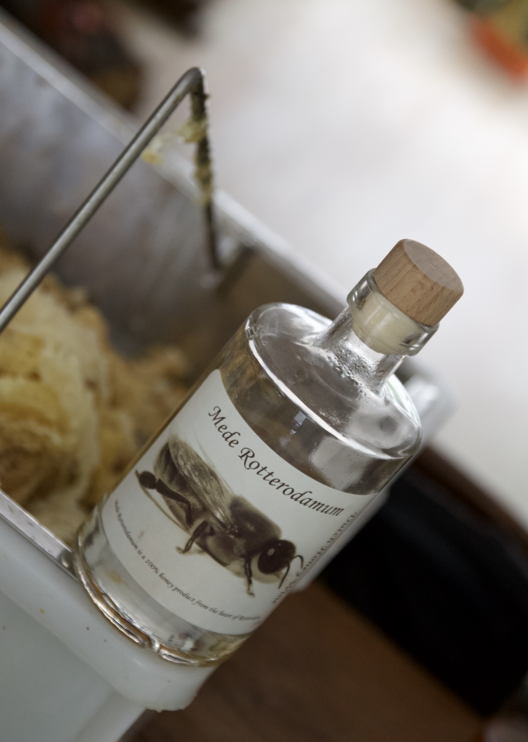 Balten Schalkwijk is al jaren imker en heeft meerdere bijenkasten door de stad verspreid, waaronder op het dak van de Delftse Poort. Dagelijks is hij in de weer met zijn koninginnen en werkers. Thuis slingert hij er op los om honing uit de honingraten te krijgen. Maar, hij maakt ook bijen likeur en verpakking van de was. Een echte bijenliefhebber dus: “Het zijn gewoon fascinerende beestjes”.