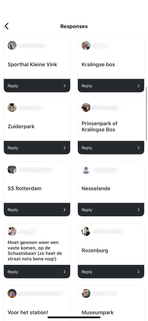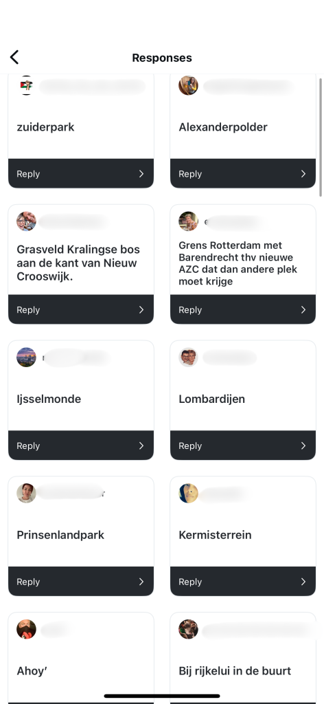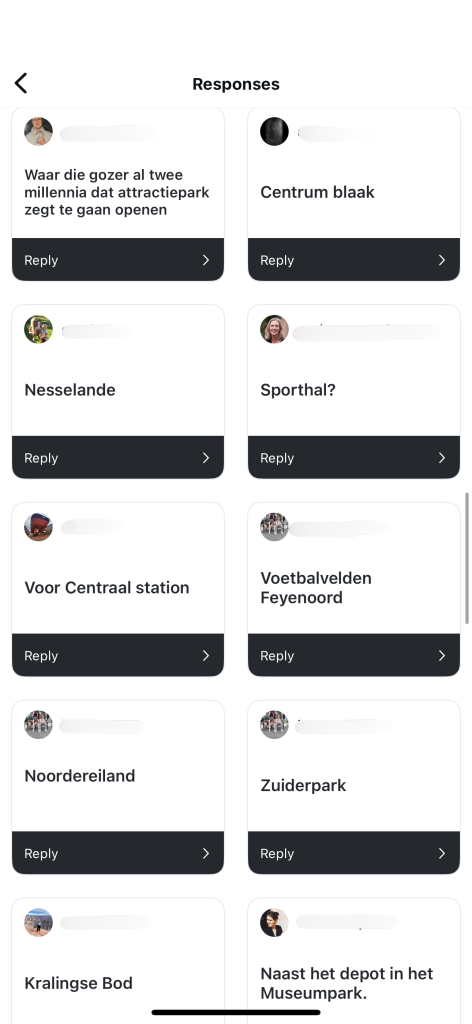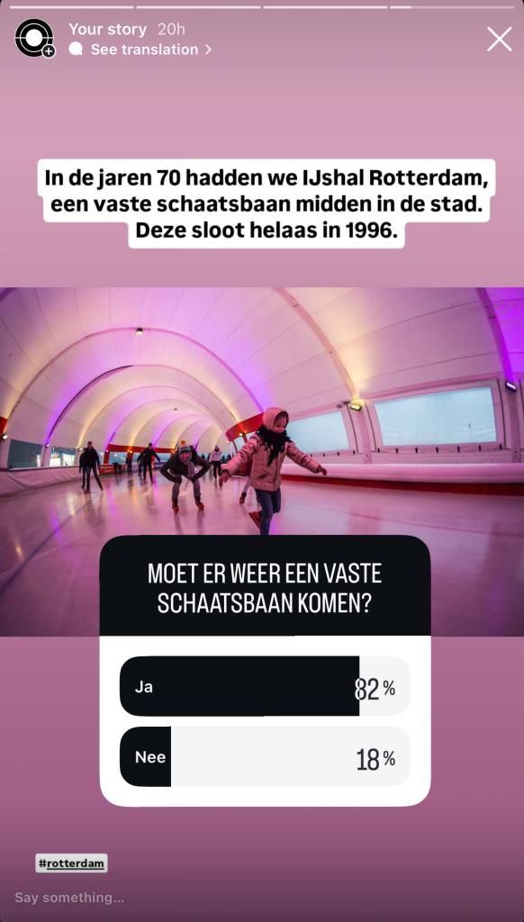 IJsselmonde, Zuiderpark, Alexanderpolder, Lombardijen; het is een greep uit de plekken die de Rotterdammers noemen wanneer wij ze vragen naar een nieuwe geschikte plek voor de schaatsbaan. Ook het Kralingse Bos wordt een aantal keren genoemd. Of de plek waar de kermis normaal huist. ‘Of waar die gozer al twee millennia dat attractiepark zegt te openen’, reageert een volger op Instagram.